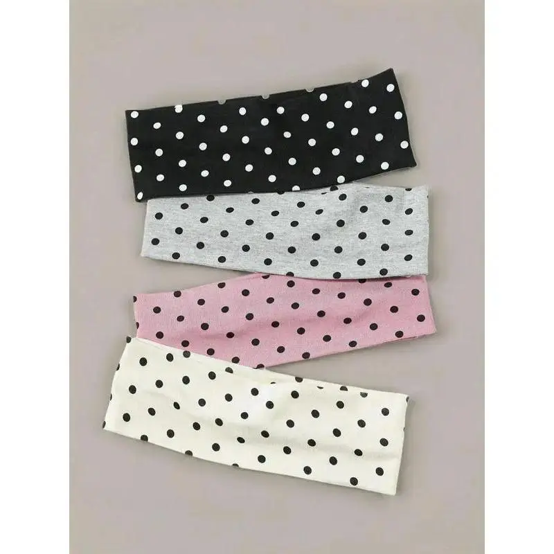 4-Pack Polka Dot Pattern Hair Bands for Women & Girls, Casual Simple Minimalist Hair Accessories, Elastic Soft Headwear Suitable for Thick Hair & All-Day Comfort Wear