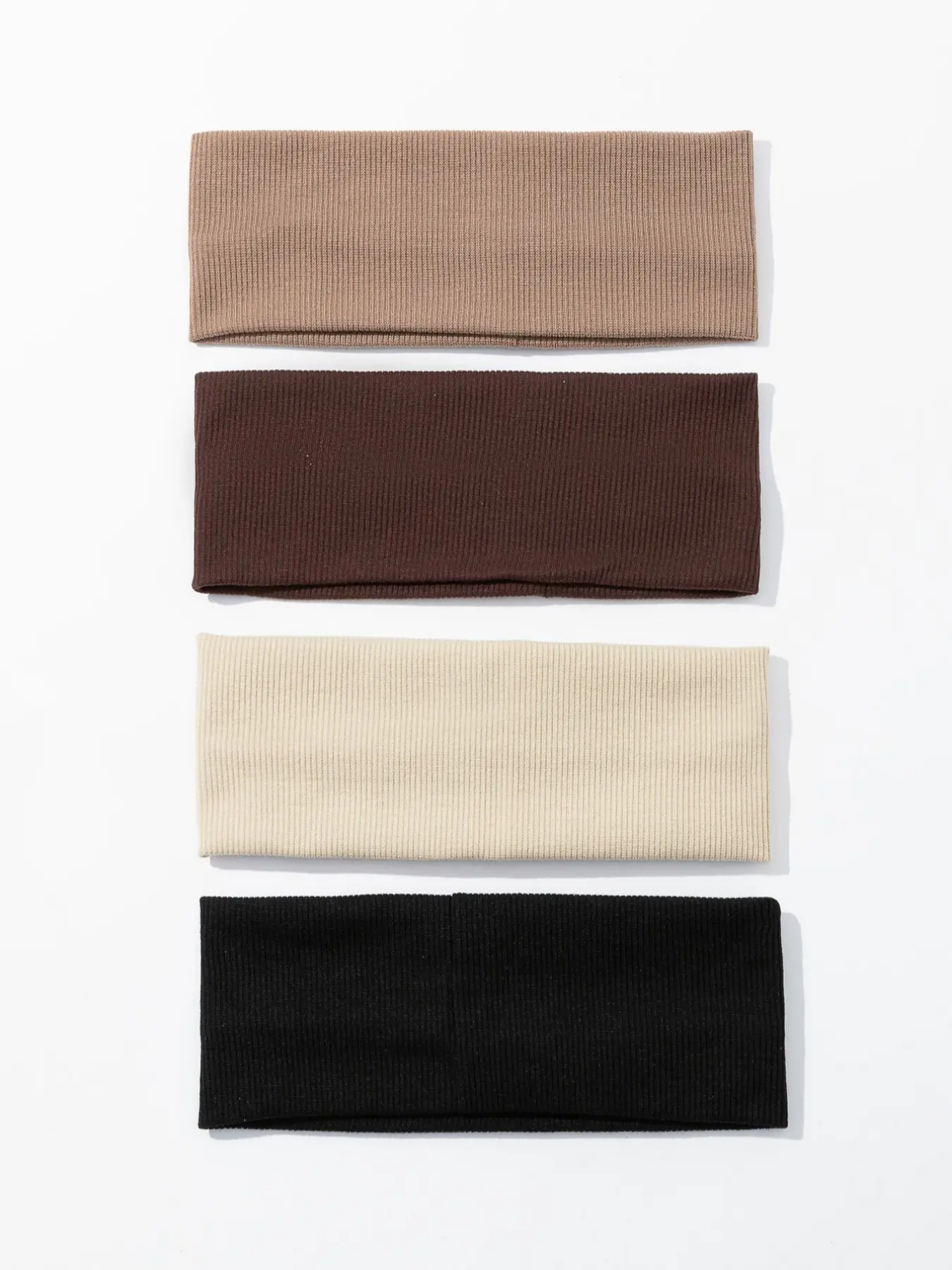 4 Pack Solid Color Knitted Sports Headbands, Sweat Absorbent Running Headwear, High Elasticity Cotton Yoga Fitness Hair Bands, Sweat Wicking Headband