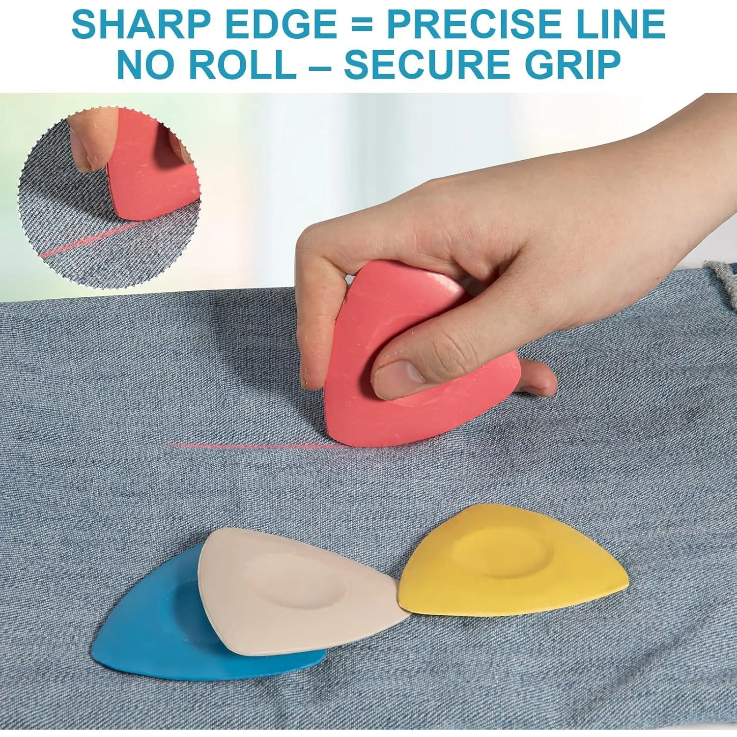 【 Triangular Shape】Each of fabric chalk features a classic triangular design that offers a secure grip and smooth control. The precisely tapered edges allow tailors, designers and sewing enthusiasts to make accurate marks on a wide range of fabrics—ideal for both tailoring and craft projects.