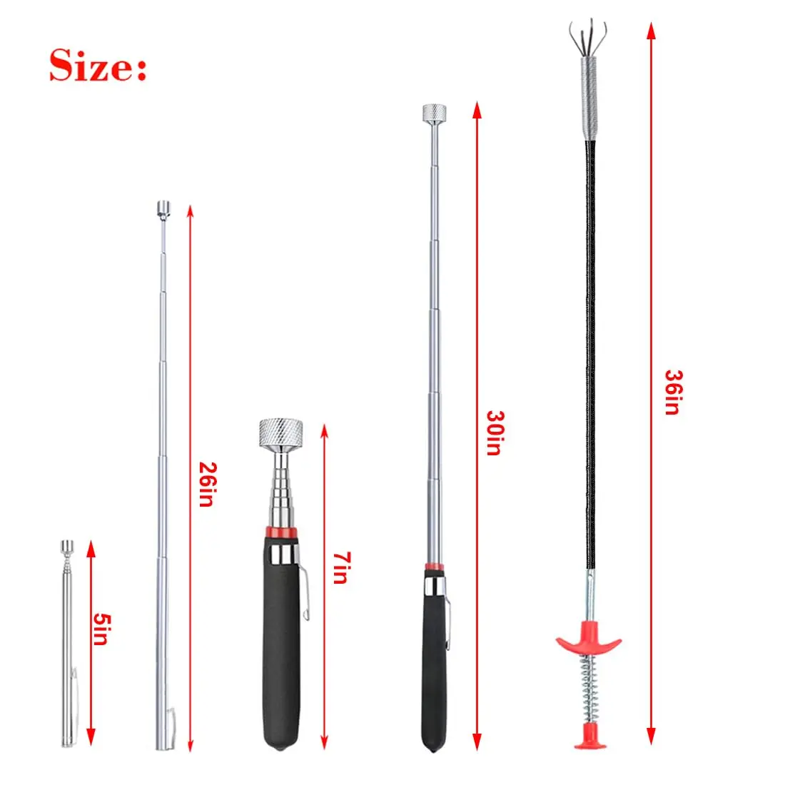 [Telescoping Magnetic Pickup Tool Wand]The largestick can extend from 7 to 30 inches, and the small magnetic pickup tool can extend from 5 to 26 inches, allowing you to get objects close to or far away from you to reach multiple corners easily.