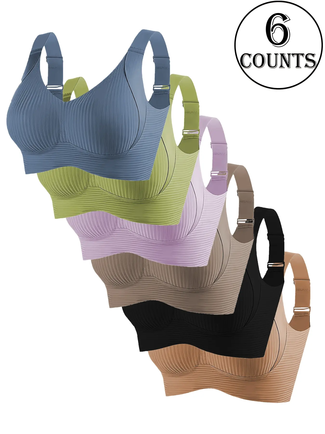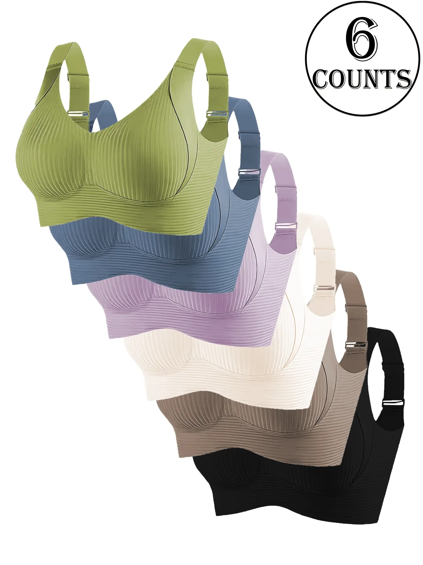 4 Pack Seamless Smooth Wireless Bras for Women, Fit, Full Coverage, Medium Support, Adjustable Straps, Plain Ribbed Design, Ideal for Daily Wear