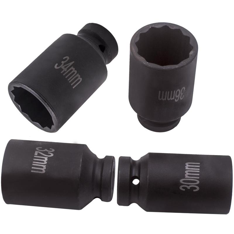 4pc 1/2 inch Drive Spindle Axle Nut Socket Set 12 Point 30mm 32mm 34mm 36mm