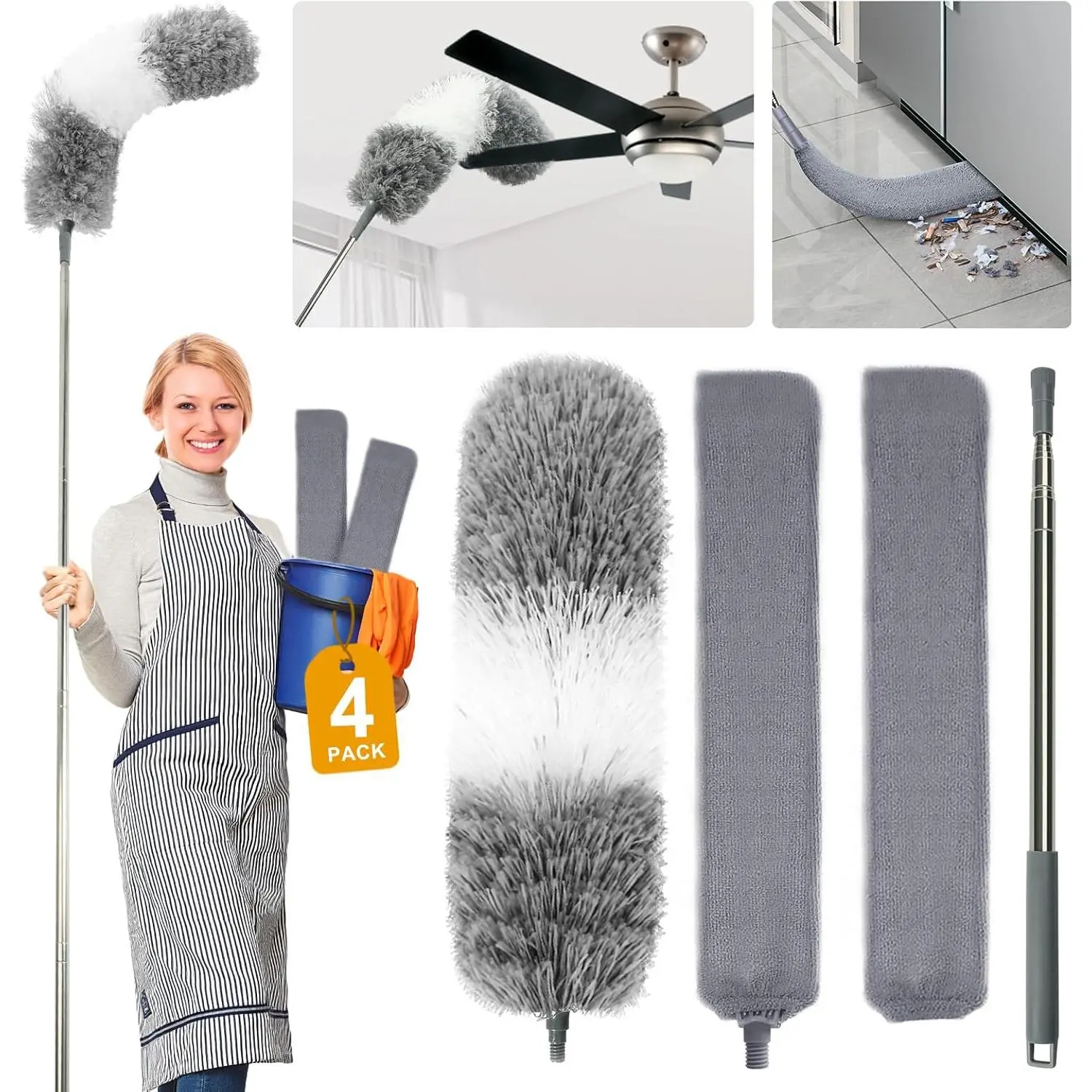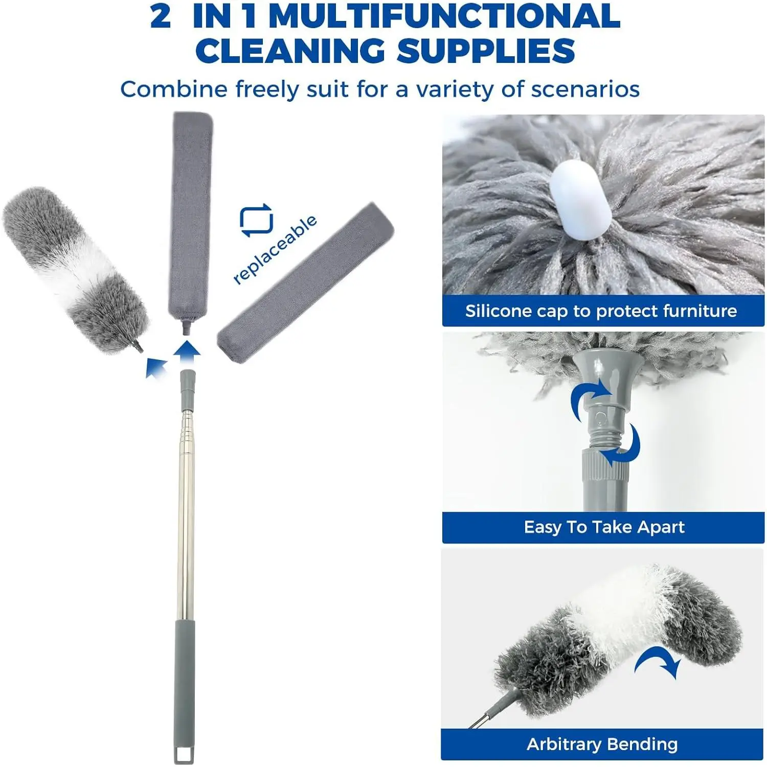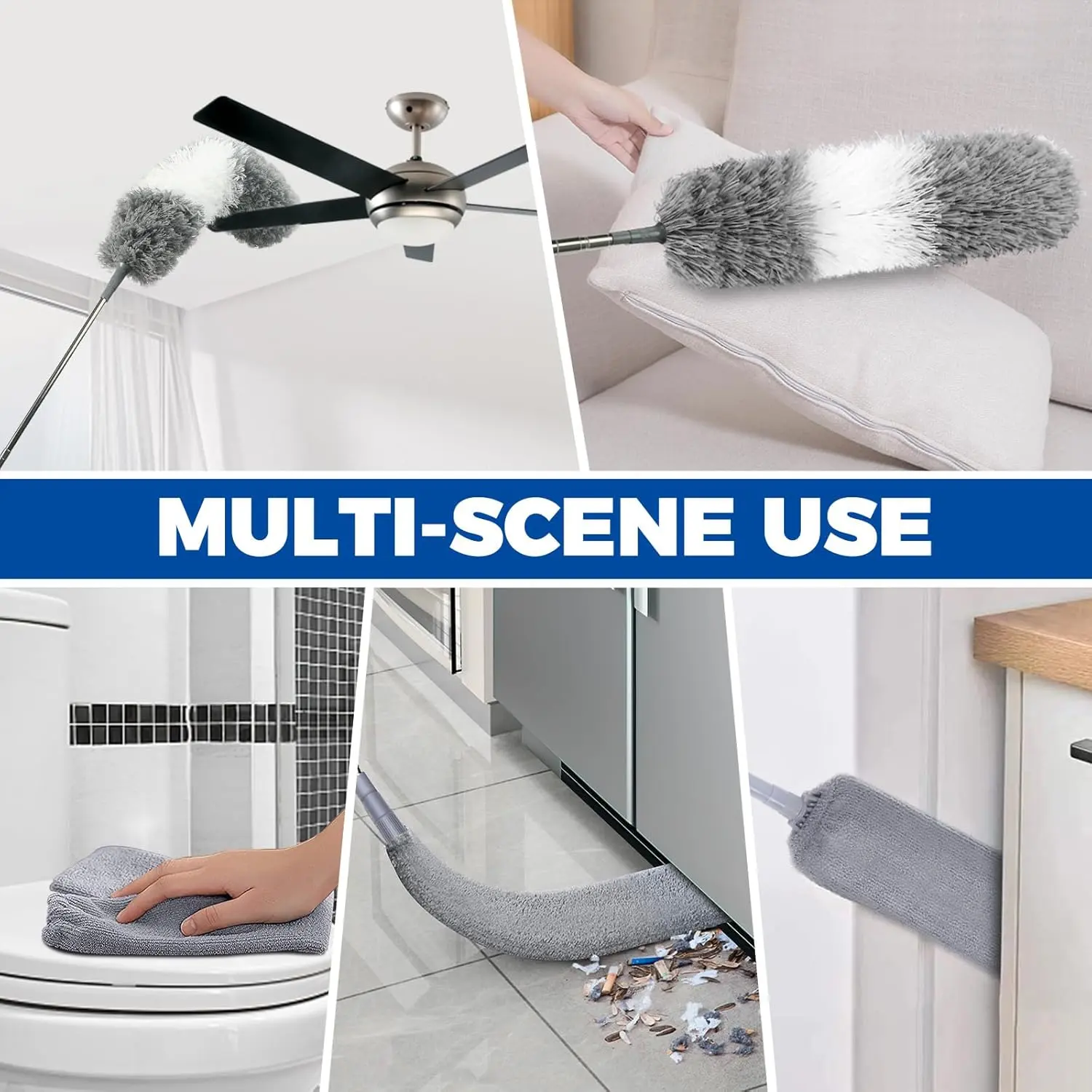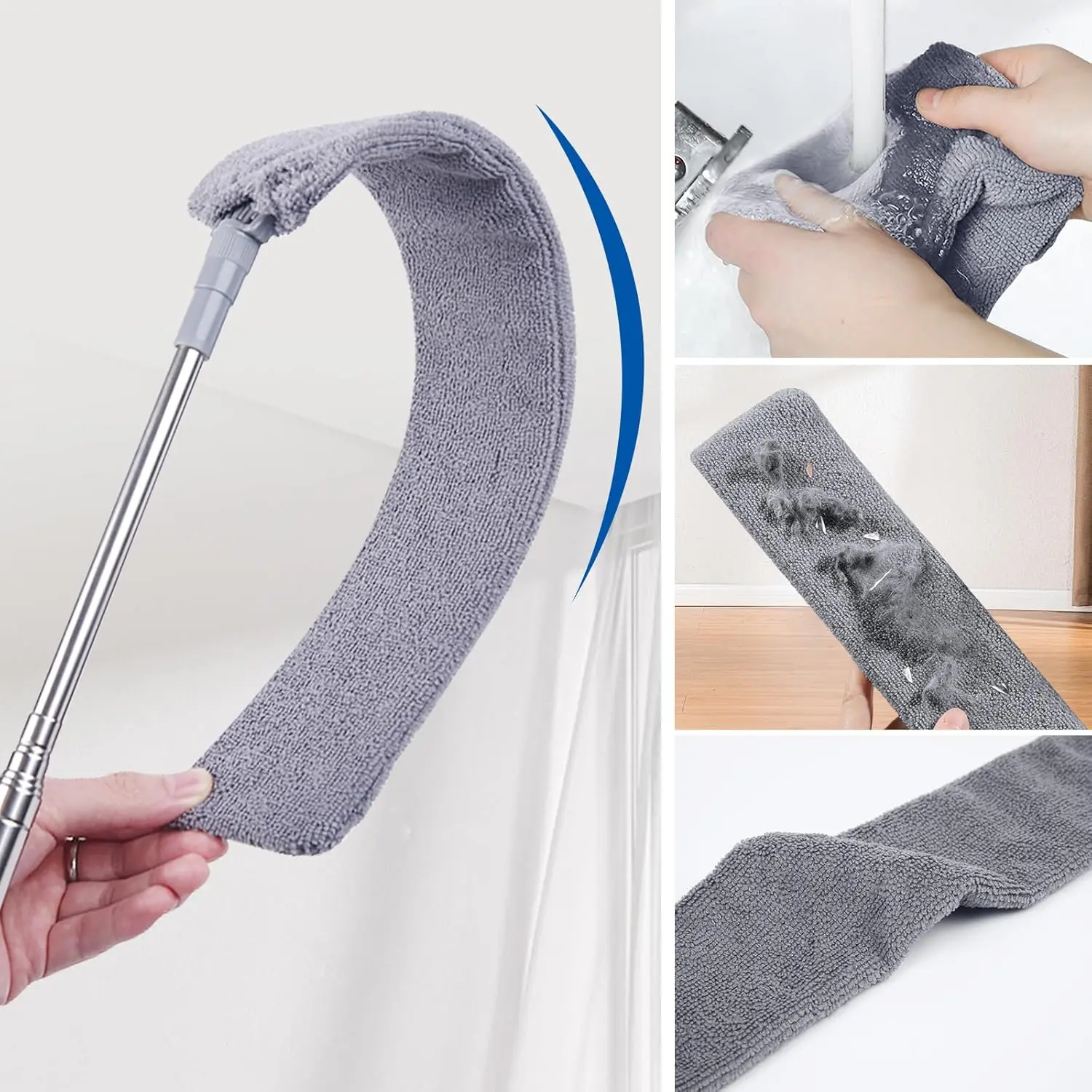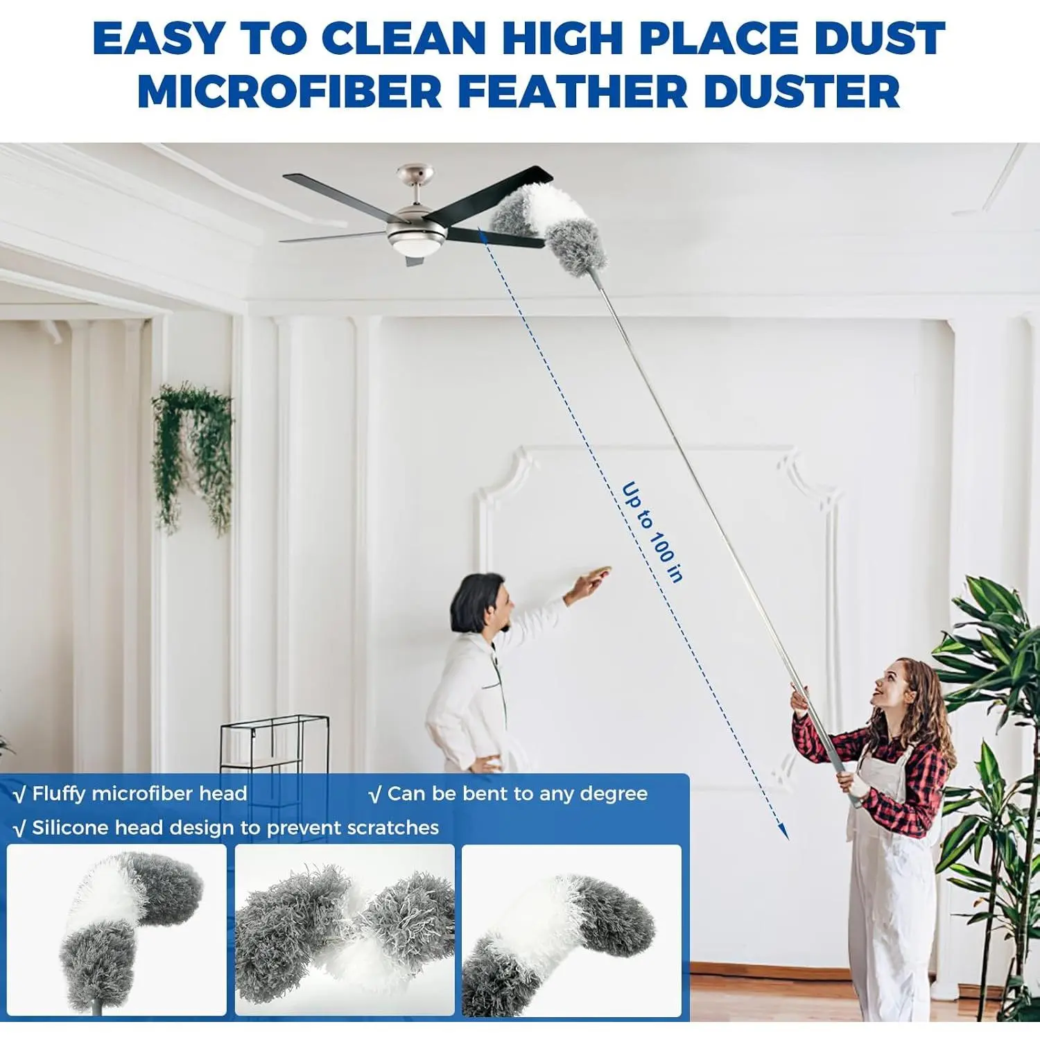Use our sturdy telescopic poles to clean hard-to-reach places like ceiling fans, light fixtures, cobwebs, ceilings, and more. The telescopic pole is made of durable stainless steel and the length can be adjusted from 30 inches to 100 inches depending on the situation. Awesome!
