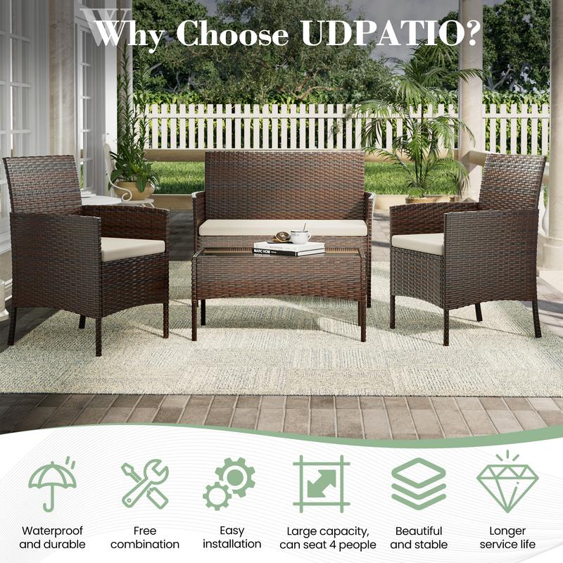 ·Sturdy material: Our four piece sets is made of sturdy steel frame and high-quality hand woven flat rattan. Compared with ordinary four piece sets, our four piece set has a more exquisite appearance, higher weight capacity performance, and can withstand wind and sun, ensuring long-term use.performance, and can withstand wind and sun, ensuring long-term use.