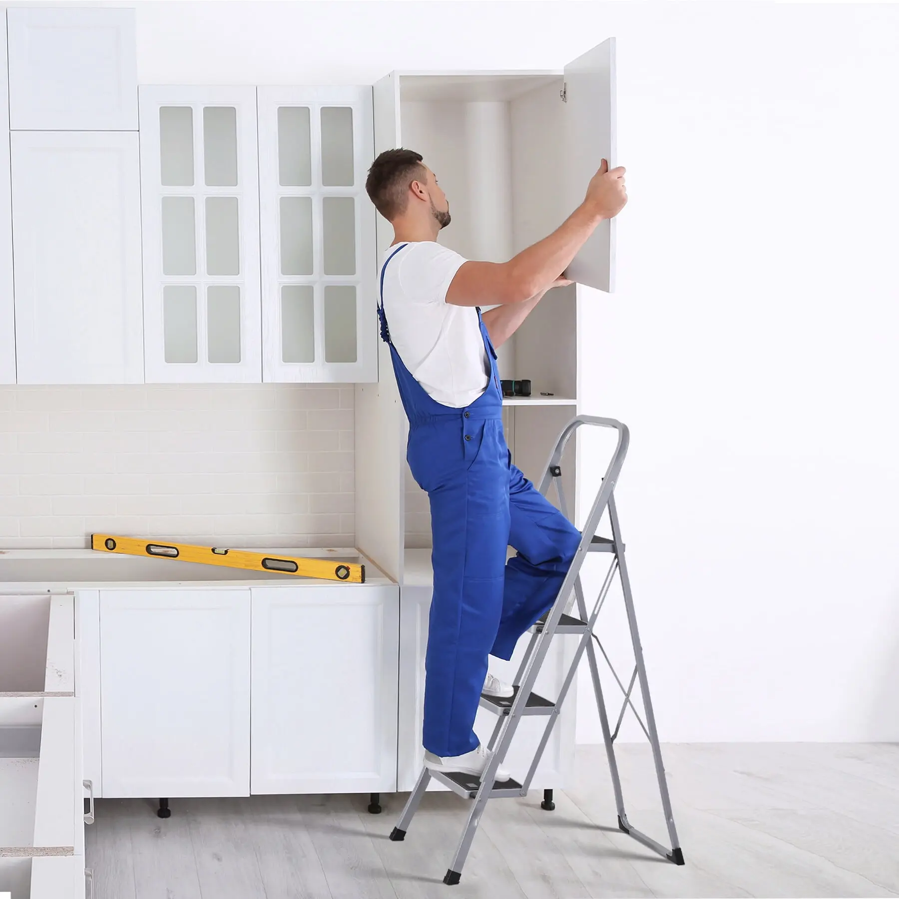 Reach your top cupboards, upper shelves, and even high ceilings with ease. The non-marring legs protect your floors and won't scratch hardwood and tile.