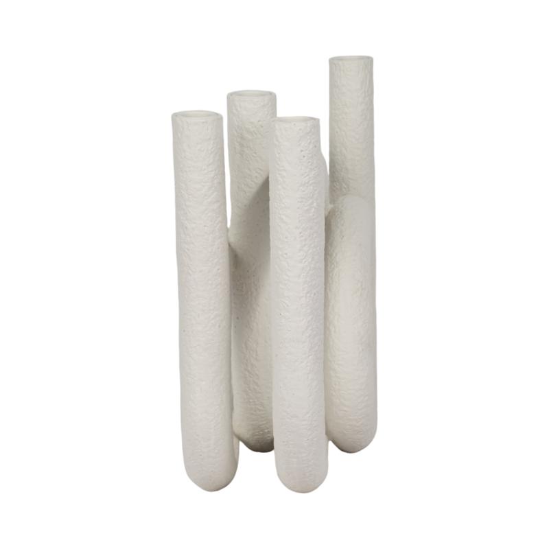 ·Revitalize your mantelpiece or tabletop with this unique white candleholder, offering a captivating looped design that stands as a modern decor statement.