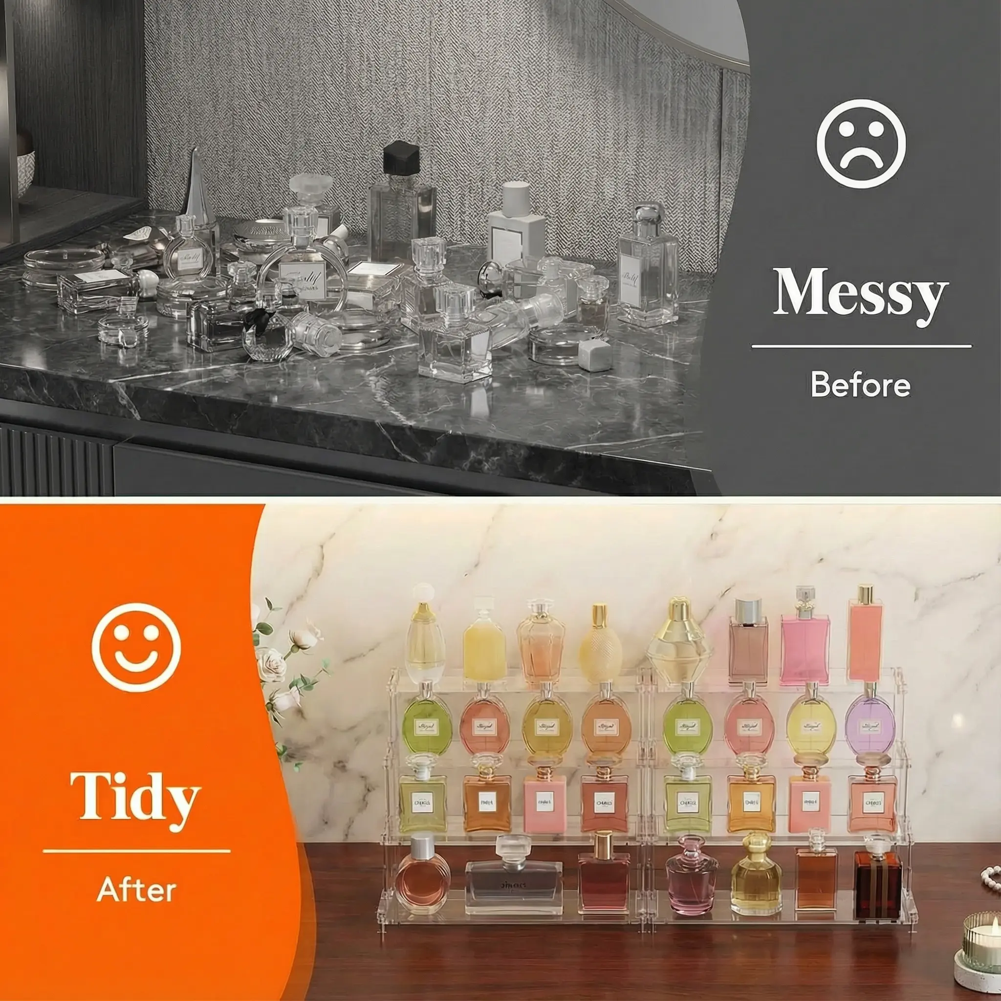 ·Effortless Organization: Optimizes vanity space with stylish display