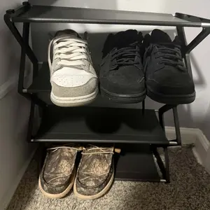 absolutely horrible product, i hate it, it is WAY smaller than the picture my shoes dont come anywhere near to fitting on the rack it is SO SMALL and nothing can fit on it, let alone the fact that it falls over from