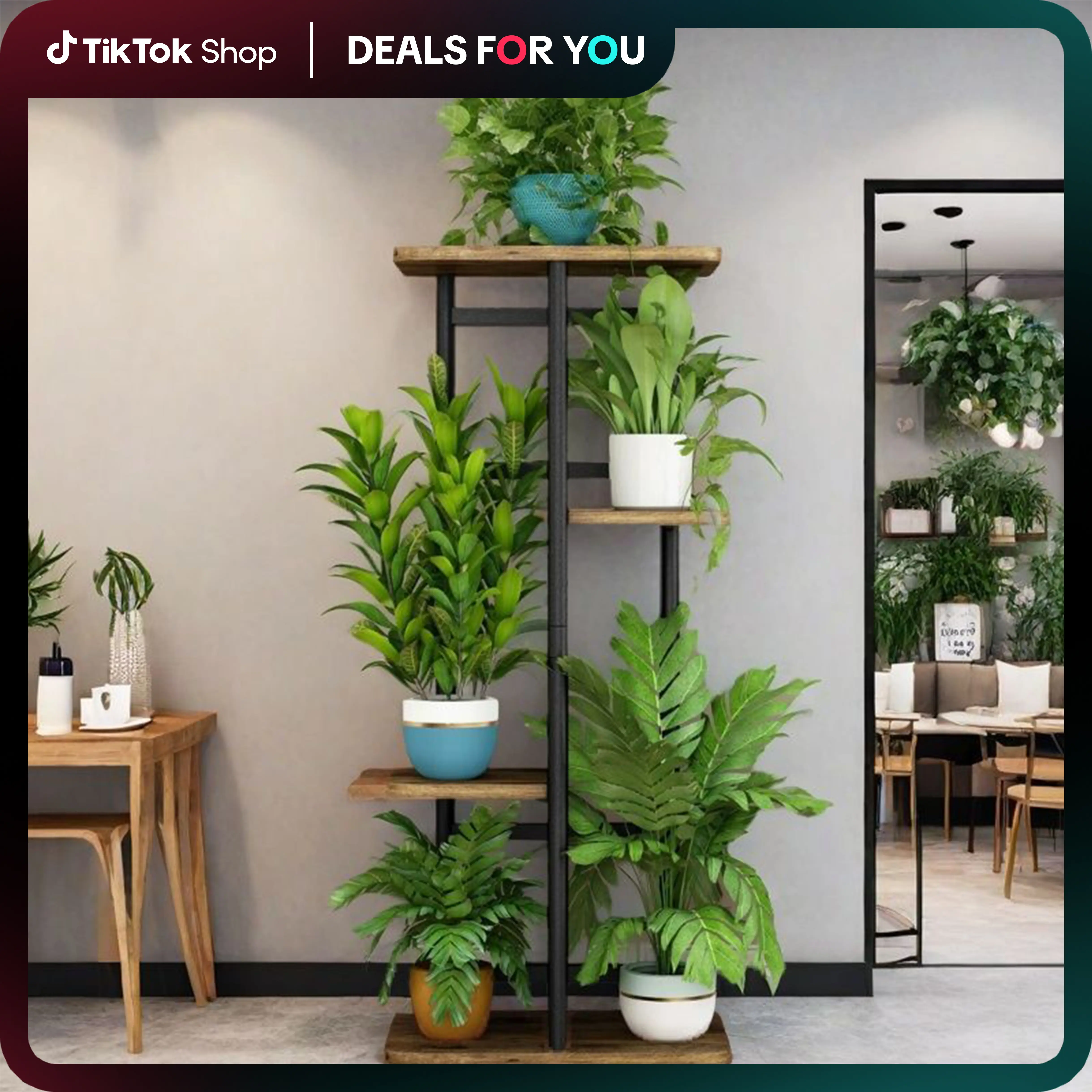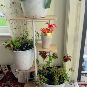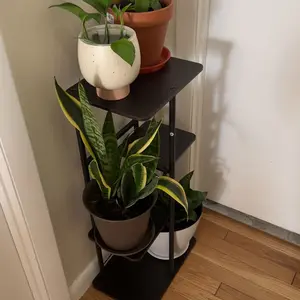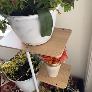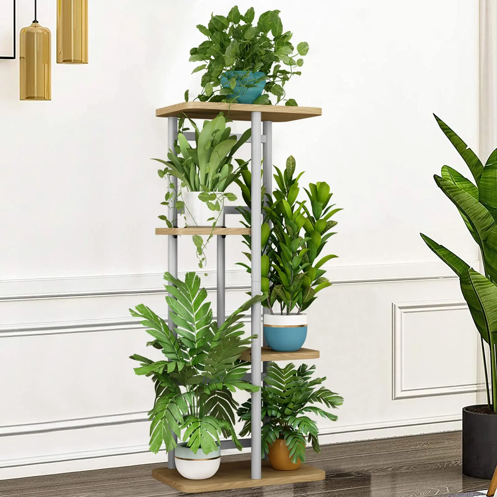 The plant stand is made of 100% pure iron and MDF, smooth and burr-free, easy to maintain and wipe. The plant stand has 4 tiers of space and can hold up to 5 potted plants. The assembly size is: 14.17L*9.05W*29.05H in (36*23*73.8cm).