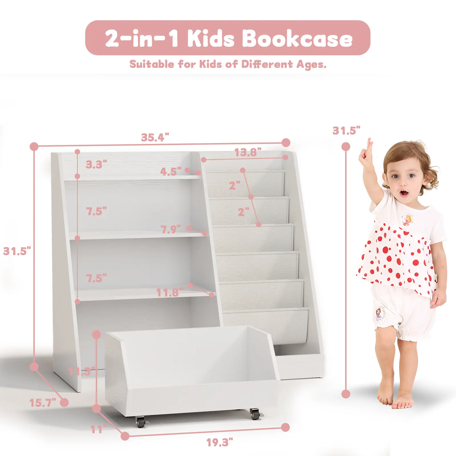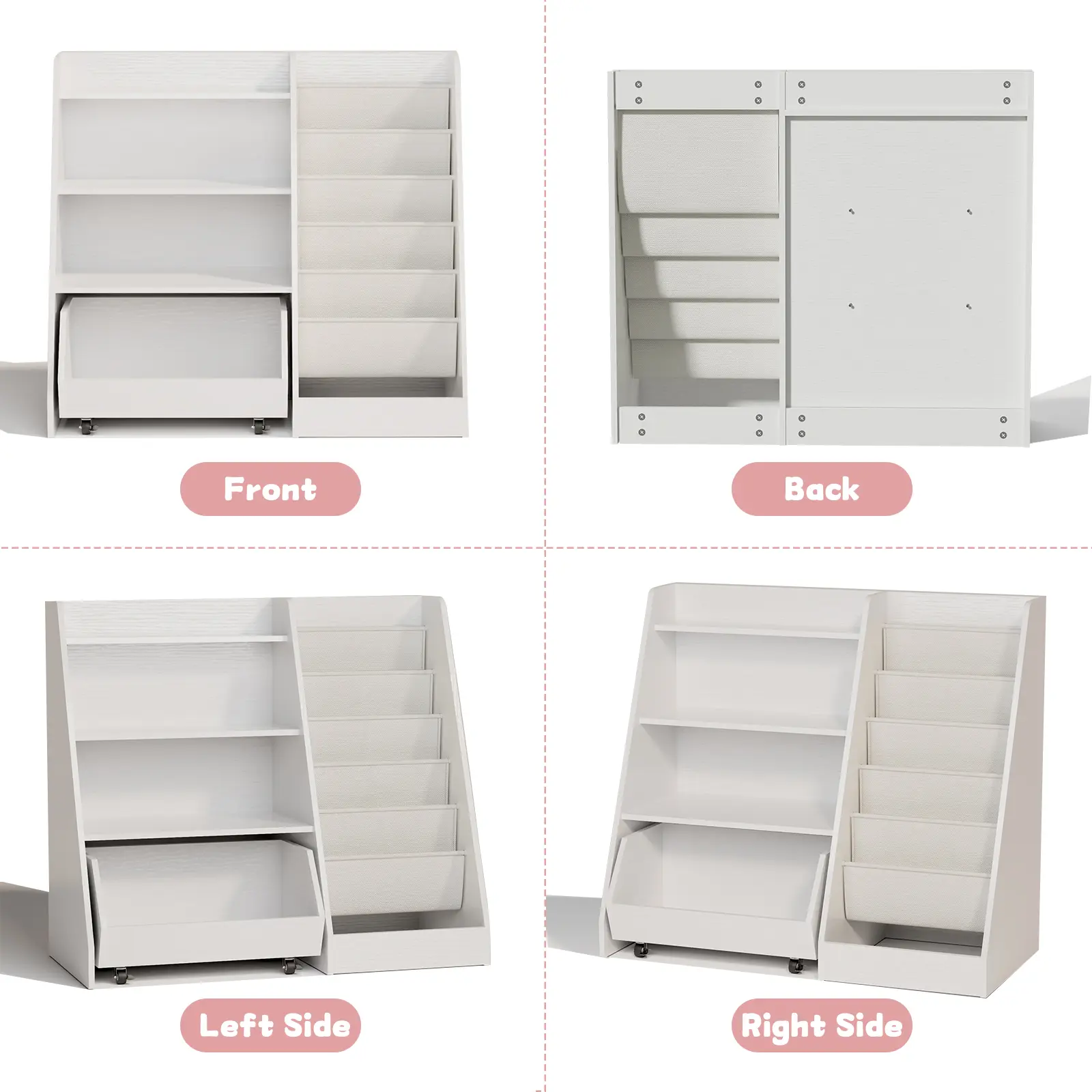 【Stylish Design】This kids bookshelf with storage goes in a contemporary white finish. Rounded edges for safety and a touch of softness to the design.