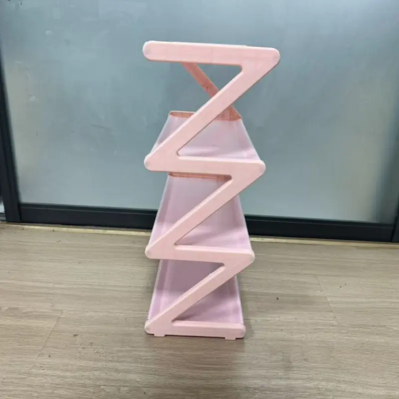 It is what is says it is, since it’s plastic it’s quite flimsy but it’s definitely perfect for slippers or just light weight shoes in general, do not put heavy shoes of though! It won’t be secure. It’s good for organizing but it’s also quite small. It’s also easy to assemble lol.