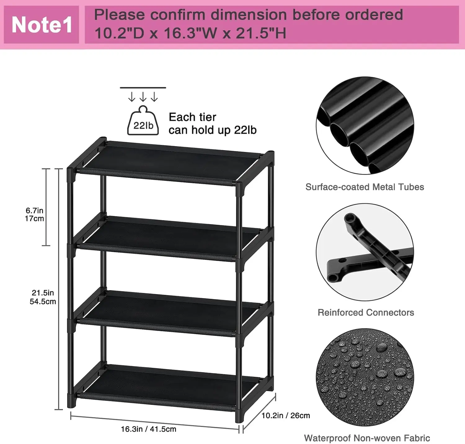 ·4 Tier Design: Provides multiple levels for storing shoes.