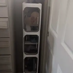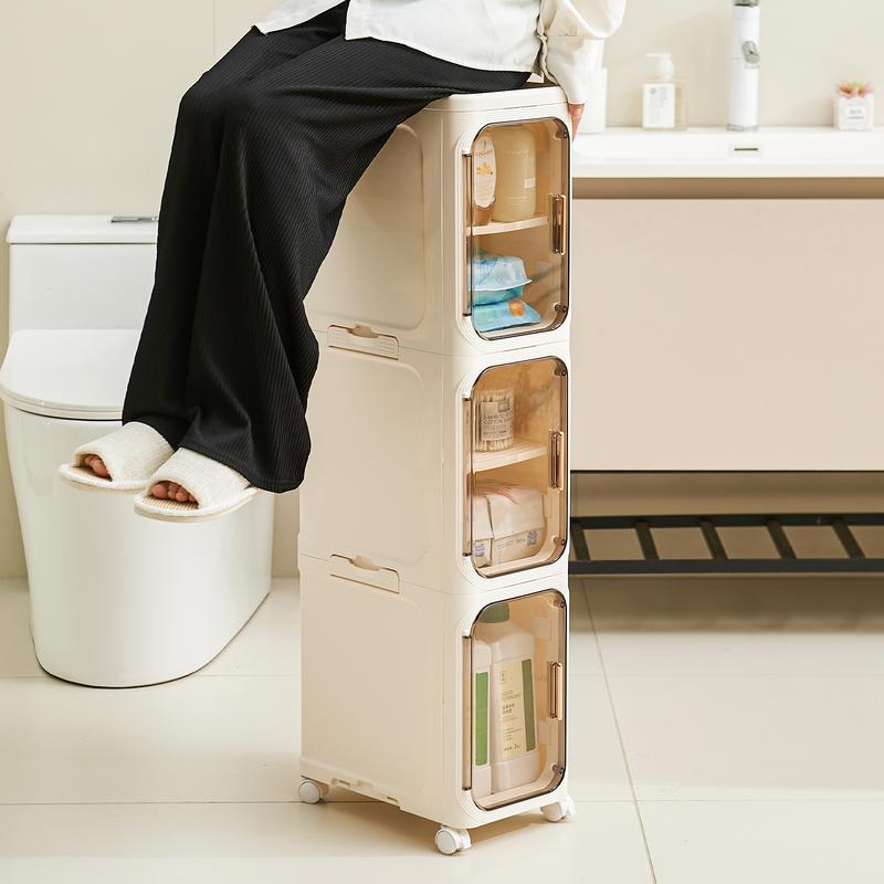 ·【Space-Saving Slim Design】This Slim Bathroom Storage Cabinet is the ultimate solution for tight spaces. Its sleek, narrow design fits perfectly in small bathrooms, laundry rooms, or tight corners, giving you a practical storage option without taking up unnecessary space.