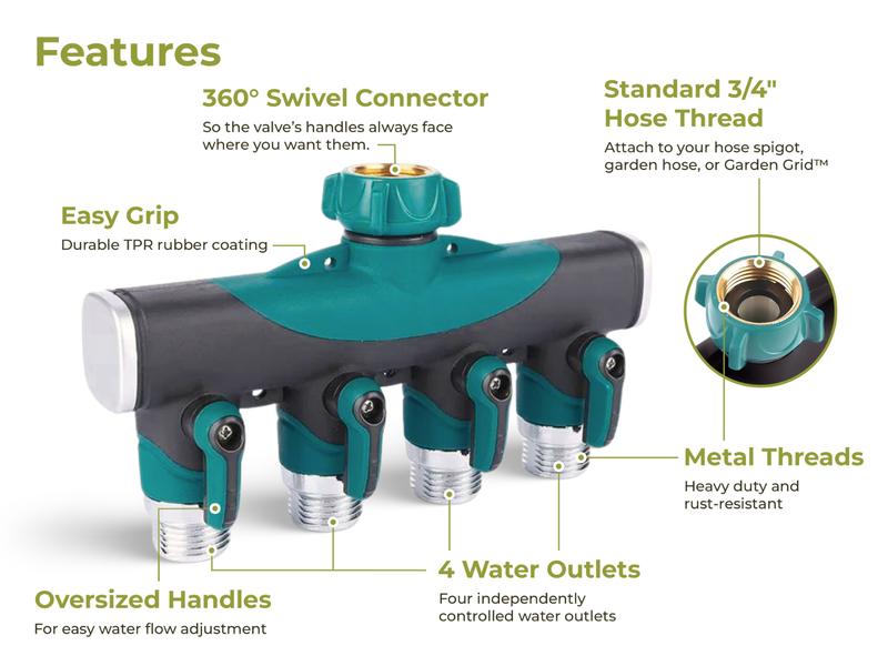4-Way Hose Splitter Features: