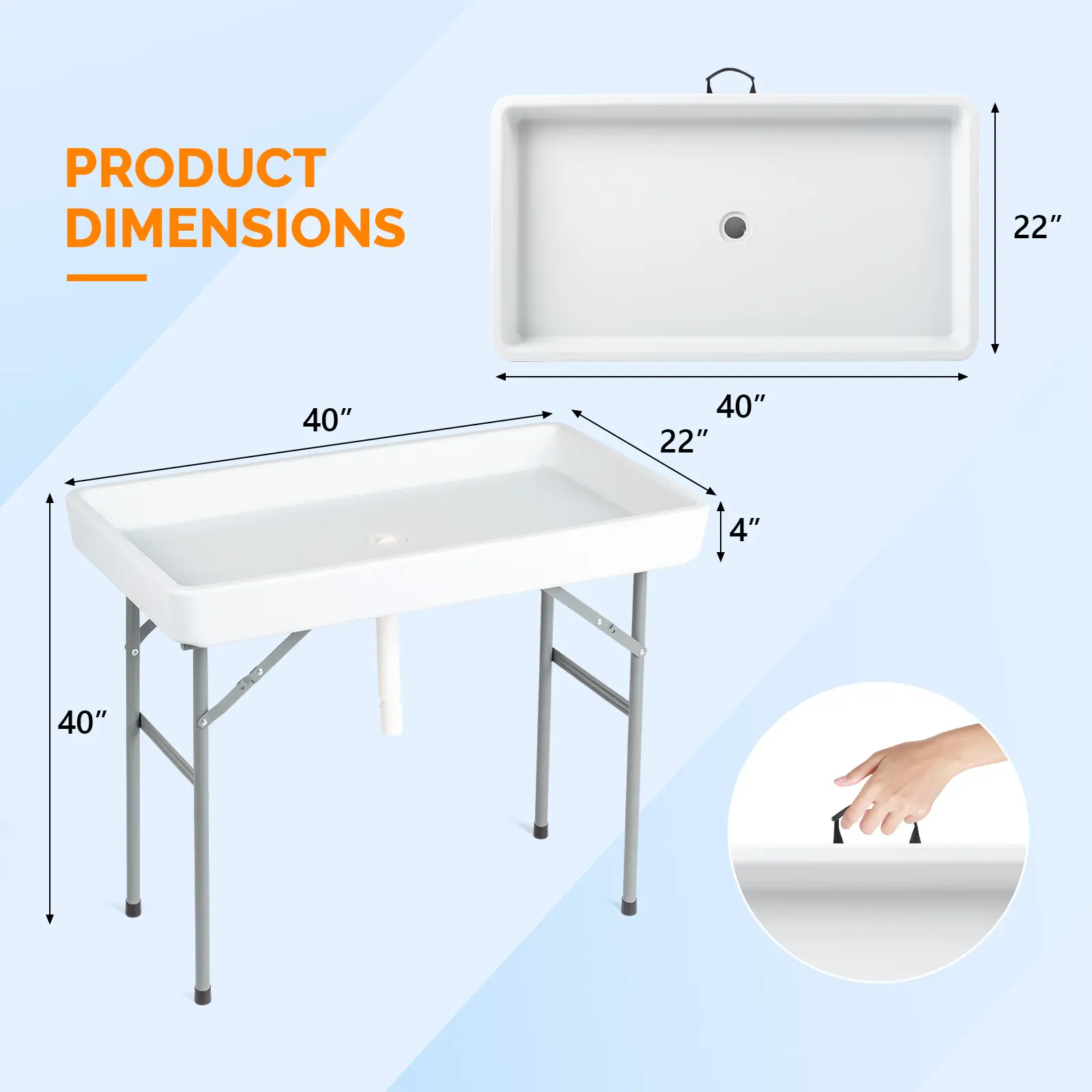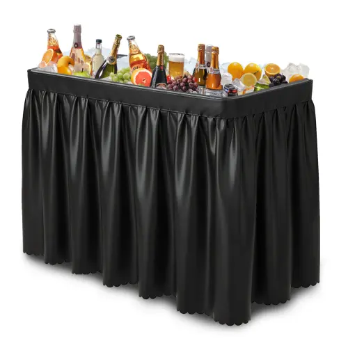 40.5 Inch Spacious Tabletop: Rectangular design offers ample surface space for drinks, snacks and tableware, perfect for outdoor gatherings and parties.Multifunctional Ice Table: Doubles as a practical outdoor table and convenient cooling table, ideal for keeping beverages chilled during outdoor activities.Sturdy & Weather-Resistant: Constructed with durable materials to withstand outdoor elements, ensuring long-term use in patios, gardens and backyards.Sleek & Practical Design: Simple yet stylish appearance blends well with any outdoor decor, enhancing the look of your outdoor entertainment space.Easy to Assemble & Clean: User-friendly design for quick setup and low maintenance, suitable for daily residential and leisure use.
