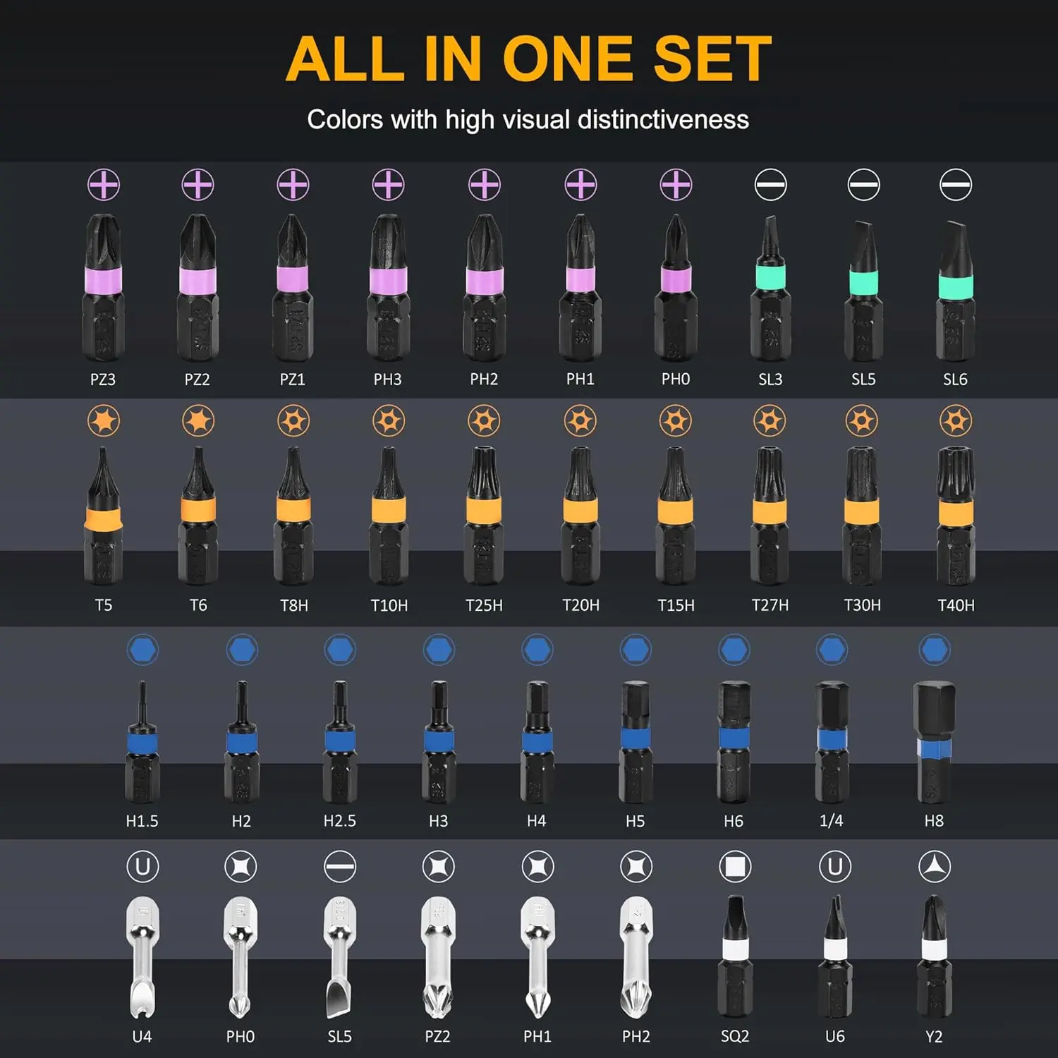 ·VERSATILE SET - Includes 38 high-quality S2 steel bits with magnetic ratchet screwdriver compatibility, covering PH, SL, Torx, Hex, and more for diverse tasks—furniture, computers, bicycles, and home appliance maintenance all handled efficiently.