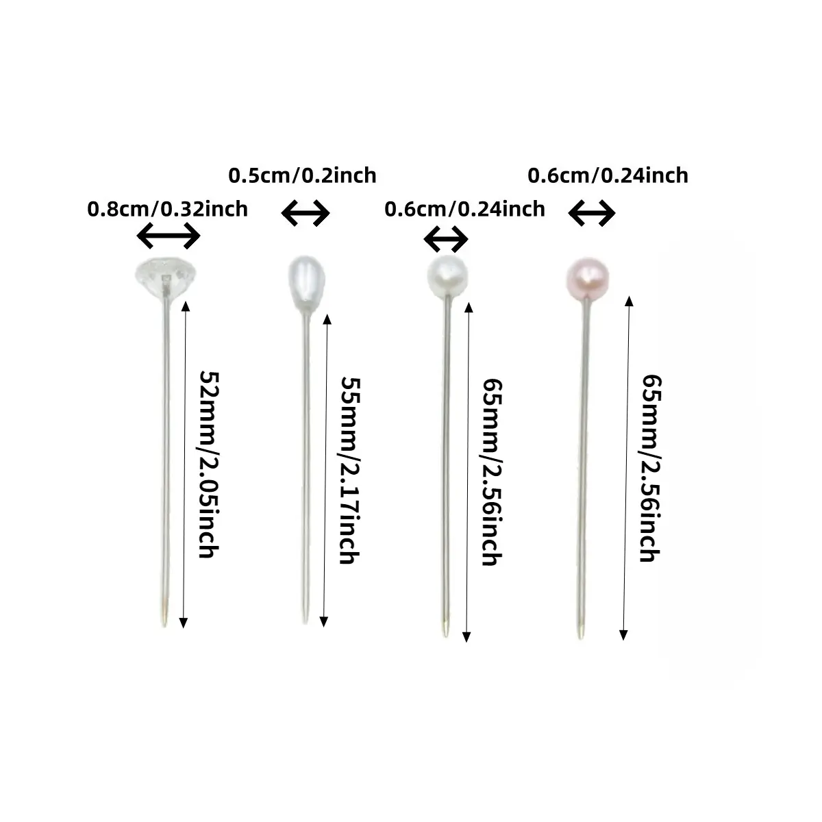 Multiple Uses: The straight pins come in 4 different size: 8*52mm diamond rhinestones pins, 5*66mm powder ball pearl pins, 5*55mm teardrop pearl pins and 4*38mm faux pearl head pins are very suitable for decorating corages and bouquets, can be placed in flowers to make them more attractive, also for clothing decoration, make clothes look more dazzling, and for weddings, banquets, anniversaries and other scenes.