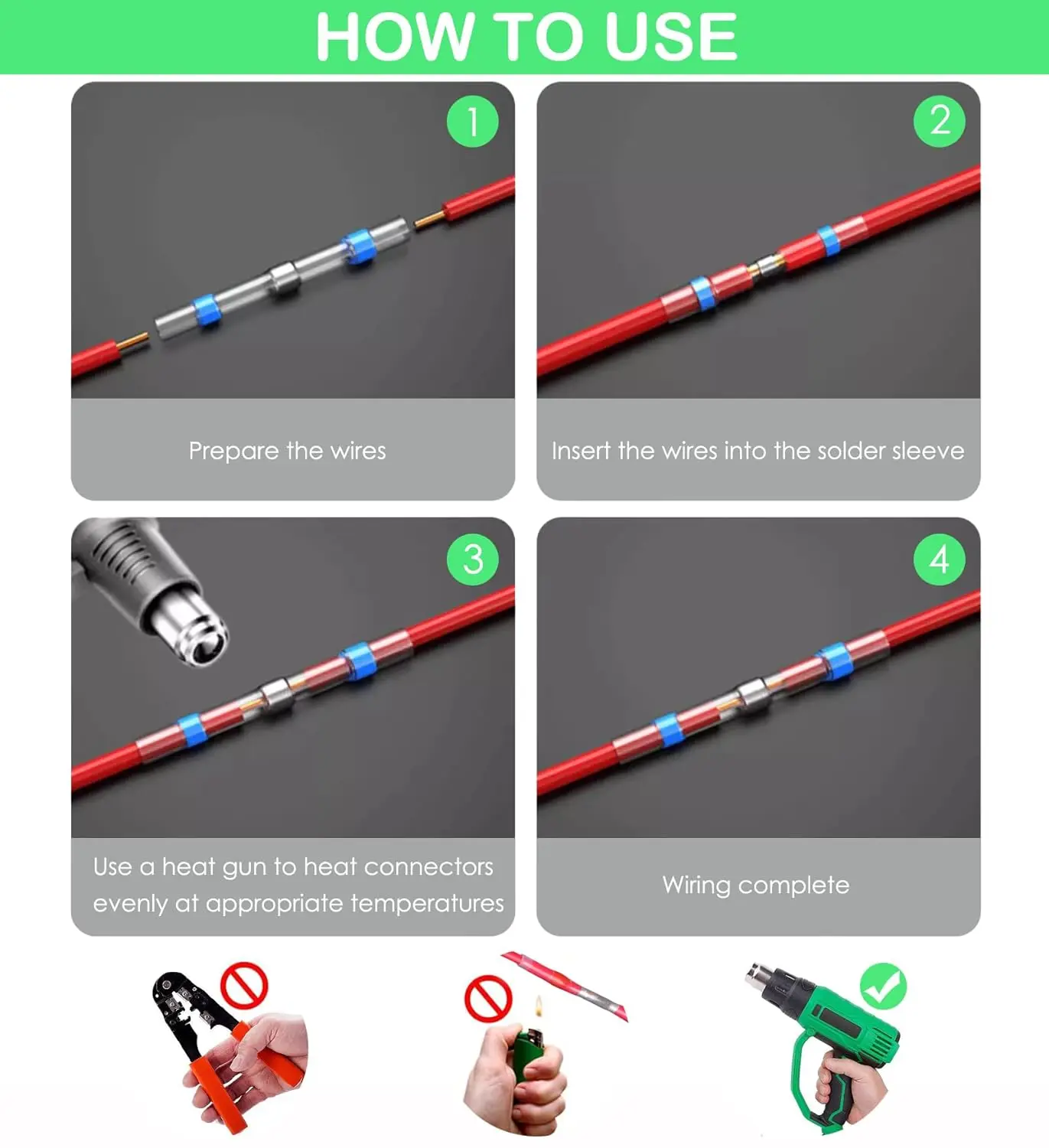·Effortless and Fast Operation: Skip soldering and crimping; use a heat gun for a quick and easy junction, significantly faster than traditional methods