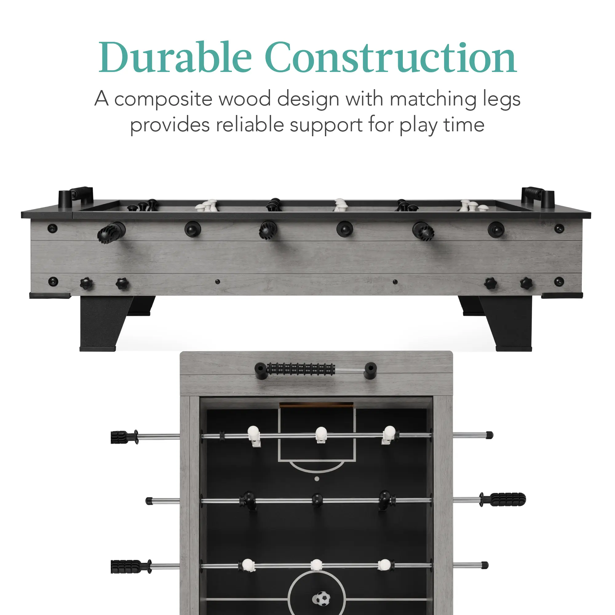 DURABLE CONSTRUCTION: A composite wood design with non-slip strips on the legs and panel bottoms provides lasting support; polished steel poles make this an attractive and reliable game set