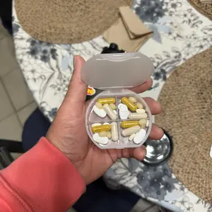 This is one of the best items I have ever purchased. As a person who is not great about taking my meds, this sets it up for me for 4 days at a time. I can fill it with ice and tea and 2 days later the same ice is still in the cup. It isn’t too bulky, it is the perfect color and it is durable.