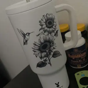 Sunflowers are my favorite flower of all time. Adding in the hummingbird was just a perfect touch. Keeps my drinks cold all day.