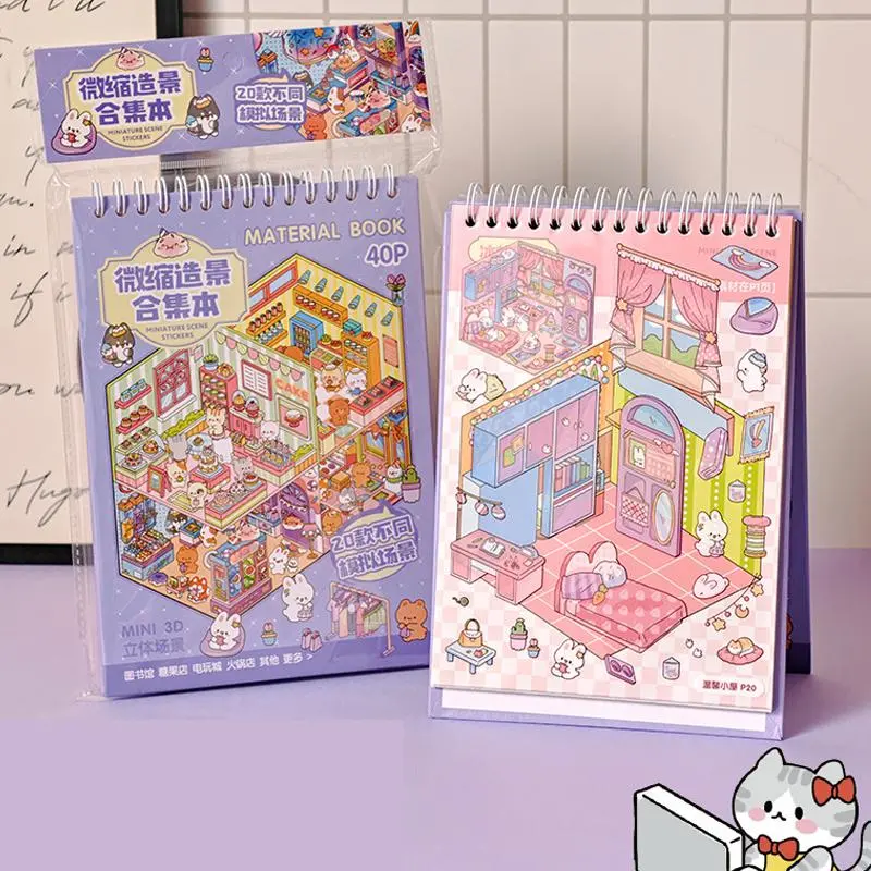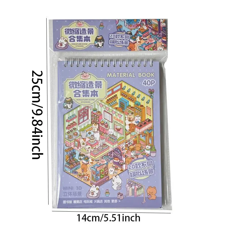 40pcs Miniature Scenic Stickers for Scrapbooking, Cute 3D Visual Cottage Design, Perfect for Journaling and Crafts, Scrapbook Materials, Sticker Packs