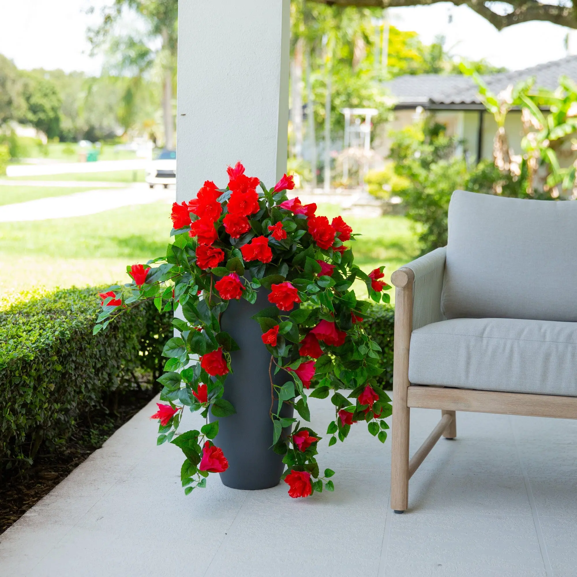 Grab this UV resistant hibiscus before it sells out and make your outdoor living area look tropical gorgeous and beautiful. #flowers #flowerarrangement #flowers #fyp #foryourepage