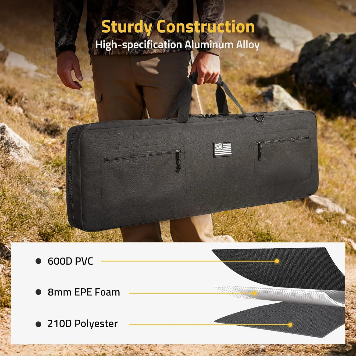Made from tough 600D PVC material and extra-thick padding, this range case provides enhanced protection. Internal securing straps keep your equipment stable during transport. The durable construction ensures your rifles remains safe and secure. 🛠️