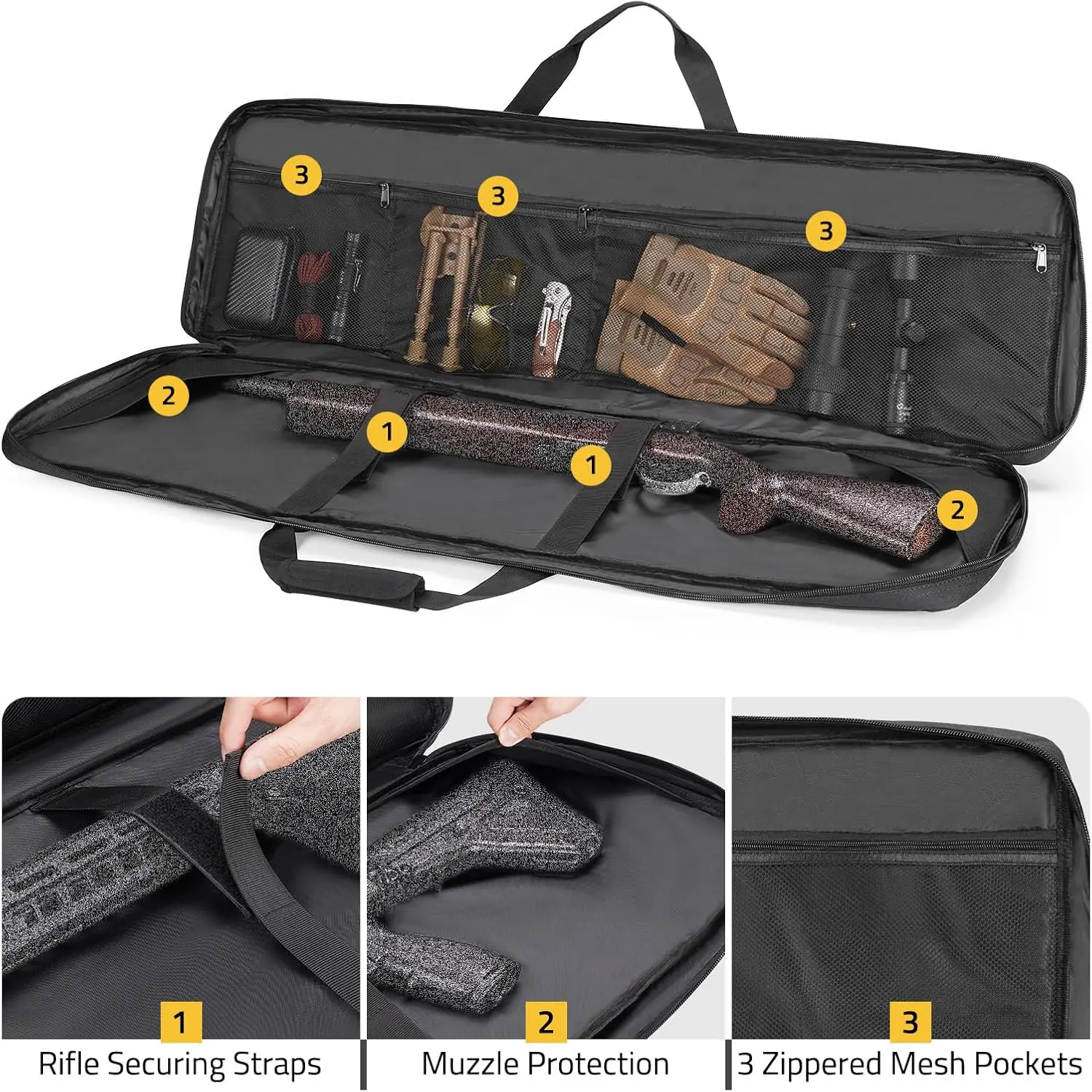 Equipped with an adjustable shoulder strap and a sturdy padded handle, this long soft rifle bag reduces your burden for easier transport. Choose the carrying option that suits your needs. 🚶♂️