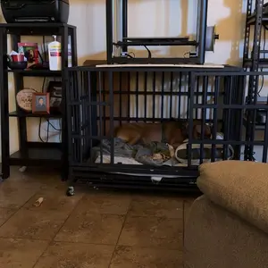 Sturdy cage the material is heavy not cheap at all, the space it's perfect for my dog very nice !! The Cage is bigger than I thought for large dogs so much room love it!! I give you guys a five ⭐ well worth the money I spent thanks 👍