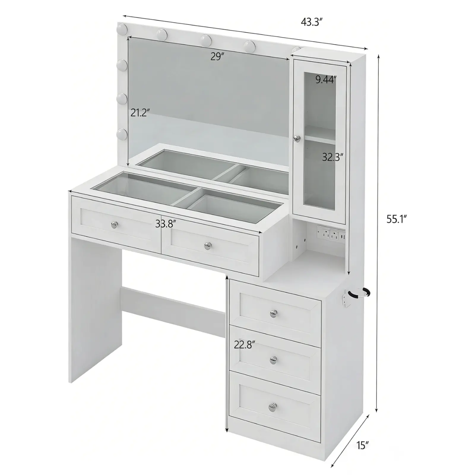 ·【Easy Assembly】The makeup vanity has all parts, Detailed instructions and tools are well-packed in one package, According to the number, the assembly process of this white vanity with lights is faster and easier.