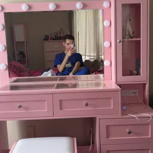 Yo tengo el mismo vanity ! Color rosado y de verdad lo recomiendo 100% fácil y de buena calidad
