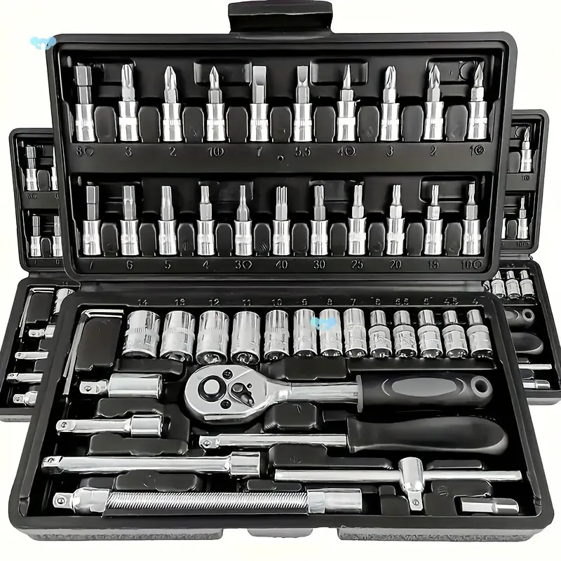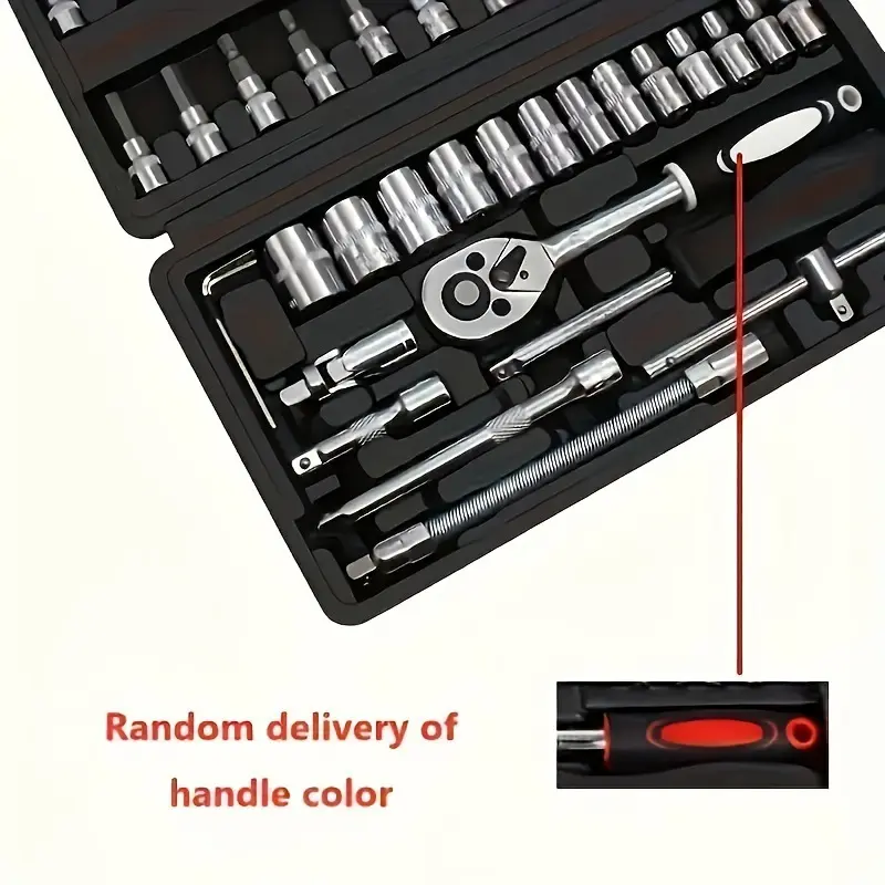 46 pcs tool set, car repair machinery tools, Automotive Repair Tool Kit with Multifunctional Socket Wrench for Car, 1/2 * 1/4 "3/8" drive depth and standard socket, ratchet torque wrench screwdriver socket combination tool