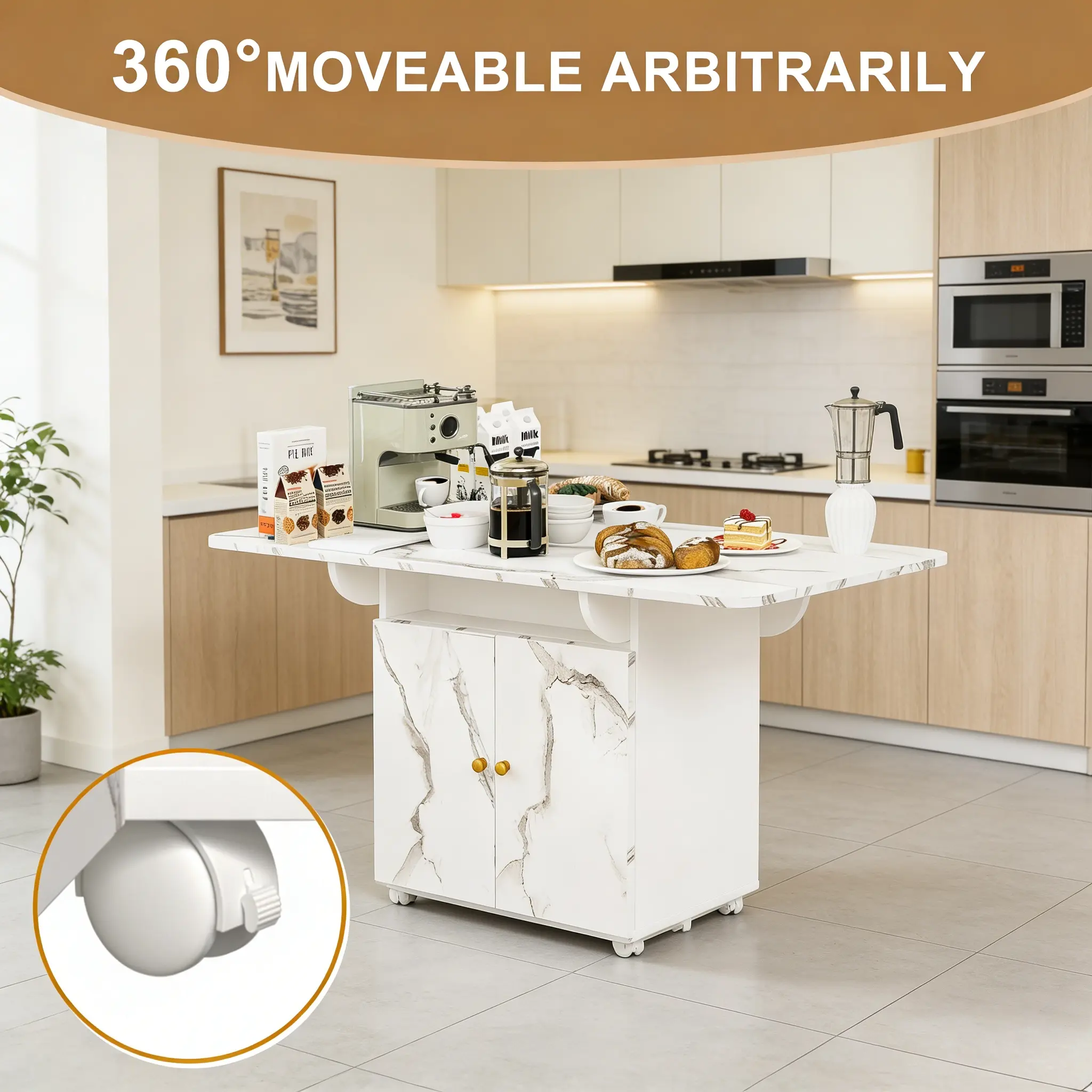 EASY-TO-MOVE WITH 6 WHEELS: Glide it from kitchen to living room to balcony — perfect for entertaining, working, or just rearranging on a whim! (Locking brakes keep it stable.)