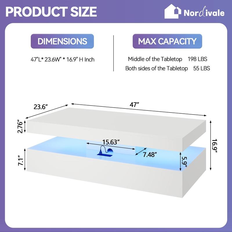 ·Dimensions and Design: This 47” high-glossy LED coffee table is a modern addition to any living room. It features a sleek double-layer design, perfect for stylish storage. 📐