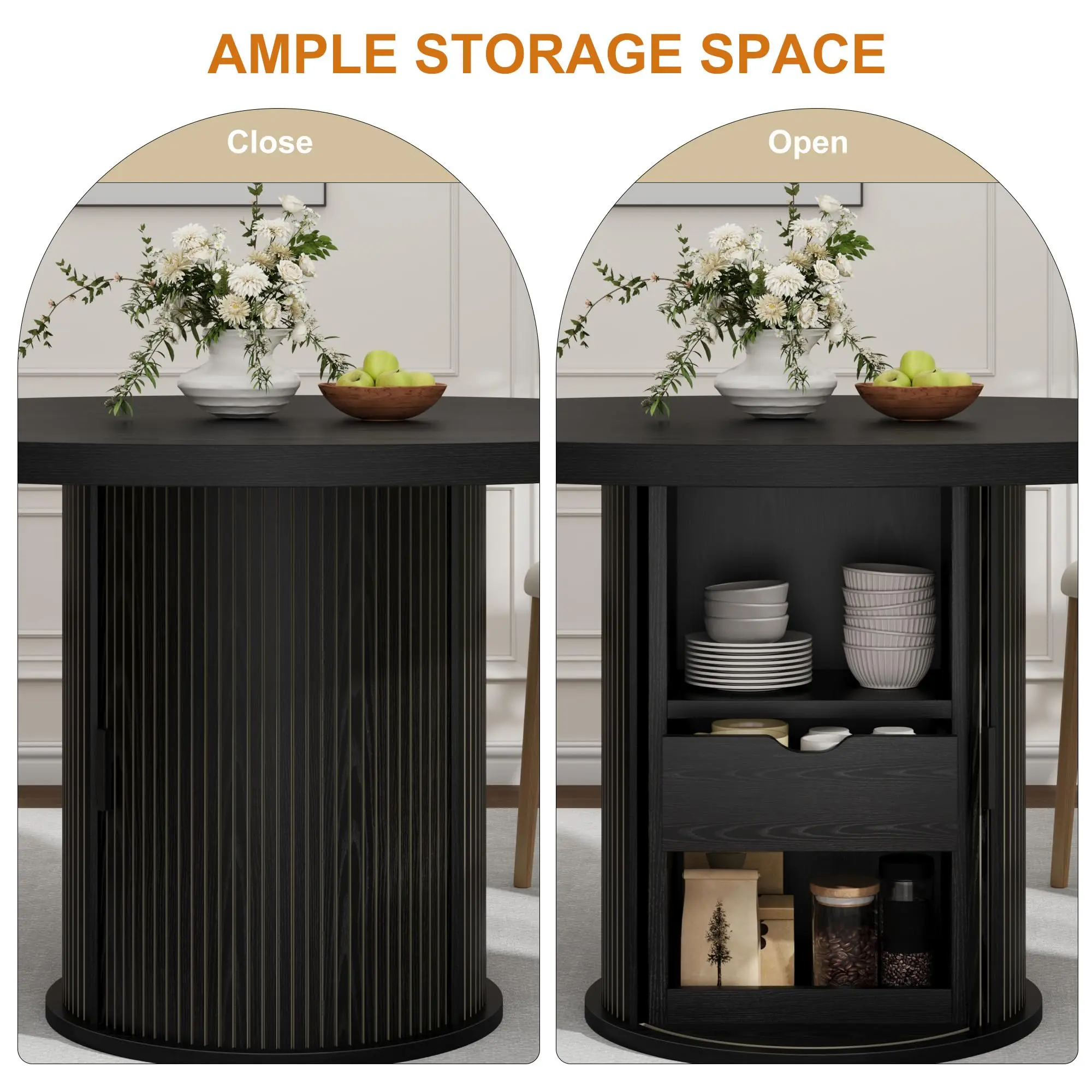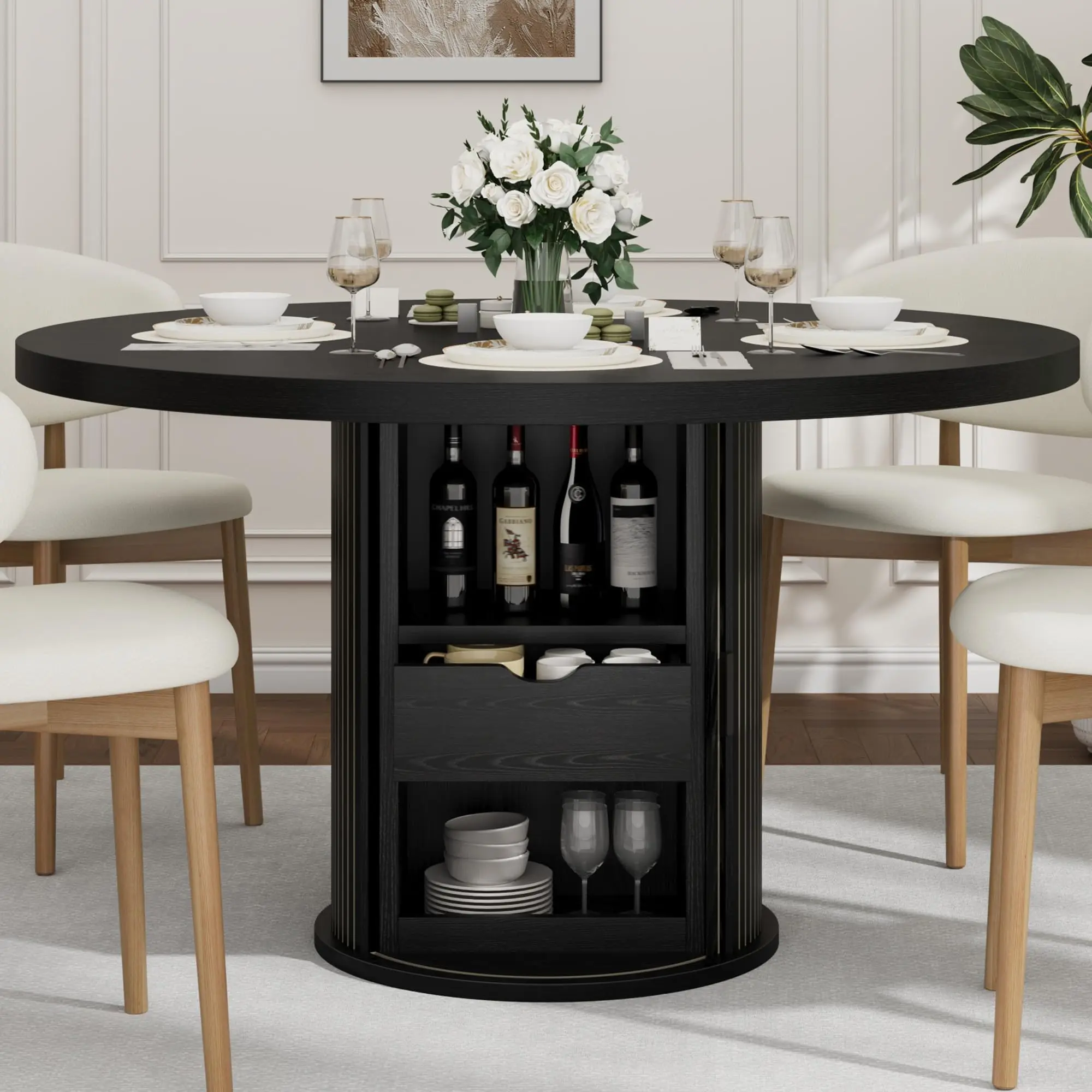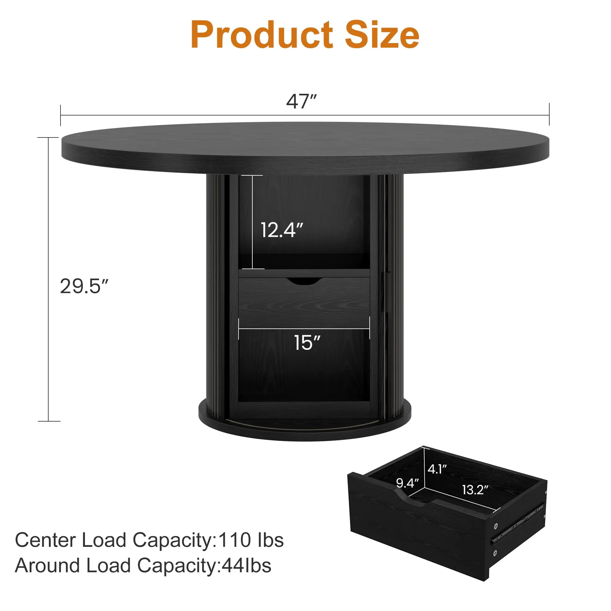 AMPLE STORAGE SPACE: The 47 Inch Round Dining Table for 4 features built-in sliding doors with 2-layer storage and a drawer, making it easy to store essentials like cutlery, placemats, small bowls, and napkins