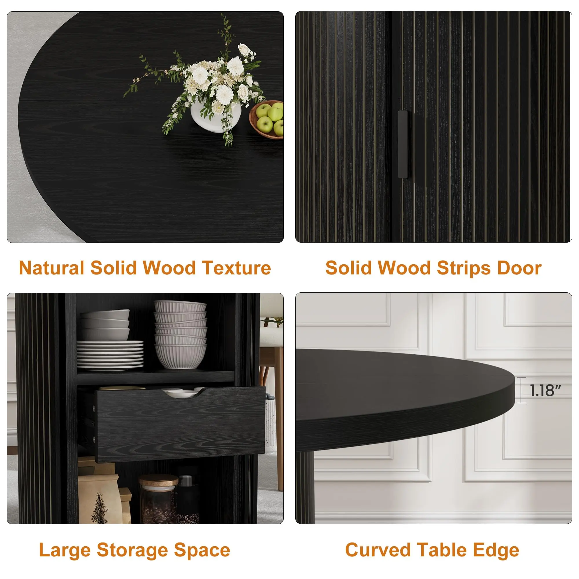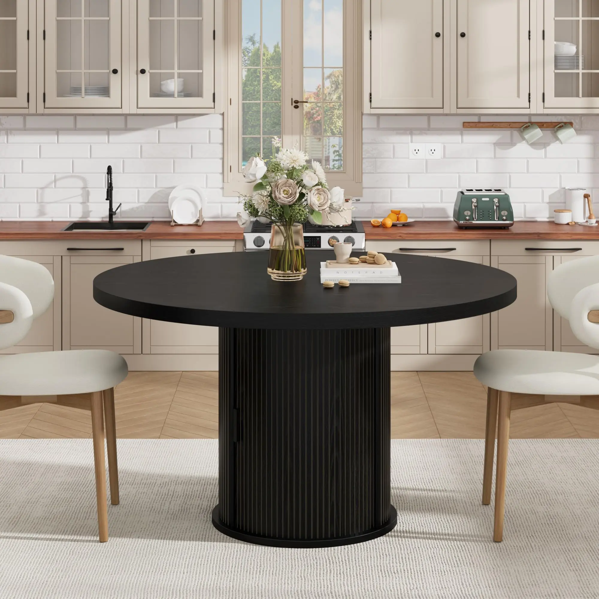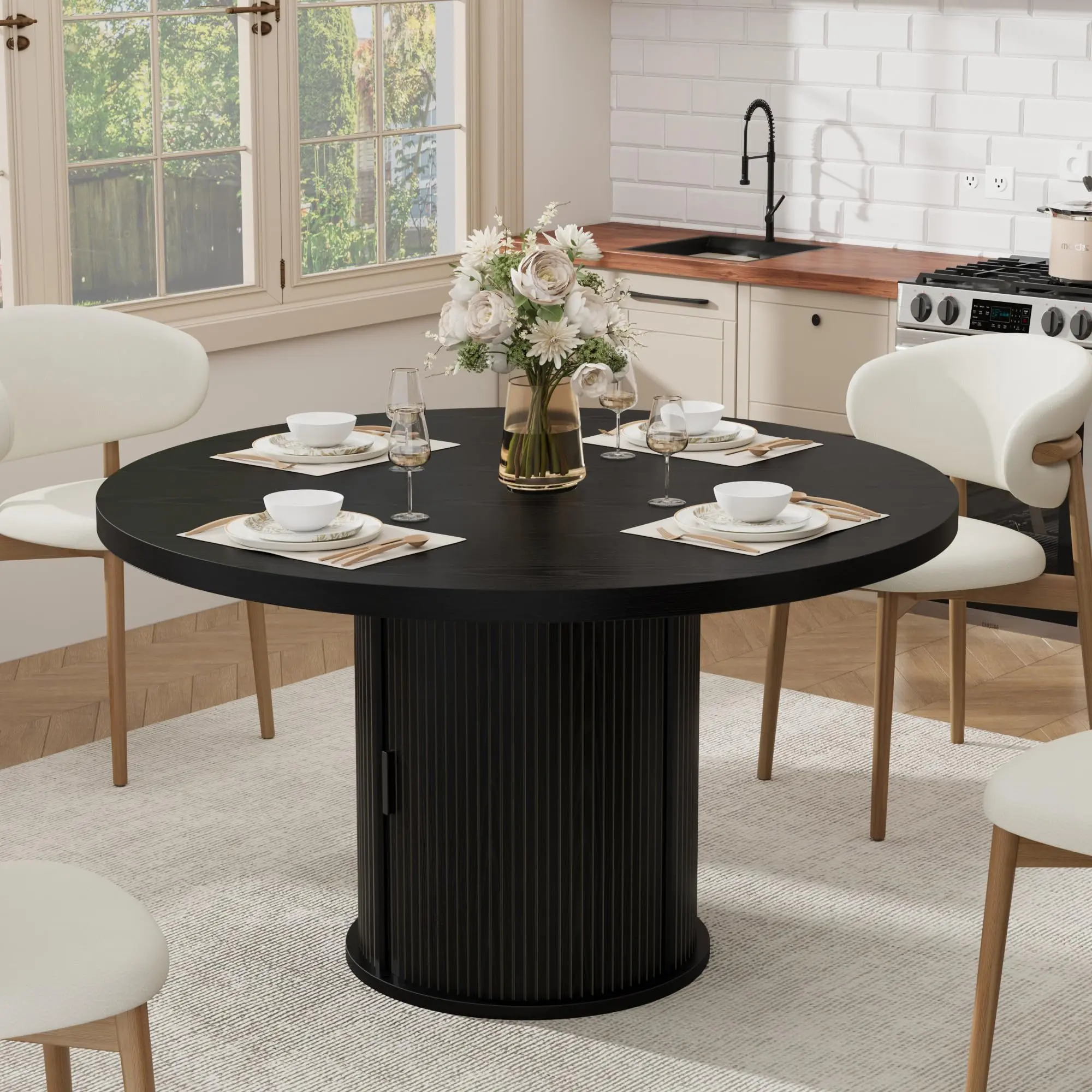 AMPLE STORAGE SPACE: The 47 Inch Round Dining Table for 4 features built-in sliding doors with 2-layer storage and a drawer, making it easy to store essentials like cutlery, placemats, small bowls, and napkins