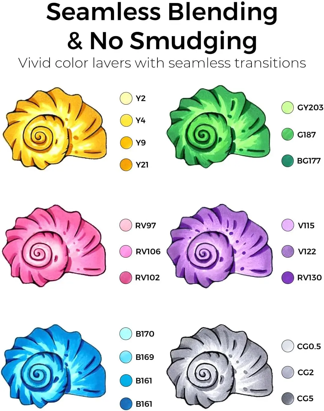 The ergonomic oval barrel provides a comfortable grip, reducing hand fatigue during extended drawing sessions. Its unique shape enhances control and stability for precise lines and flawless blending. The color-coded caps make it easy to organize and quickly select the color you need.