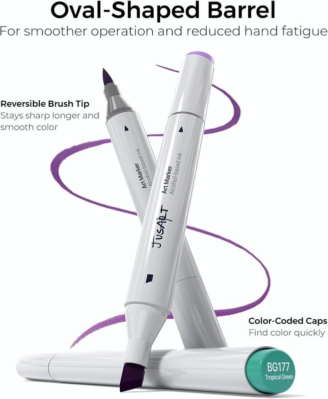 The alcohol-based ink in these markers blends effortlessly, making them ideal for adult coloring books, drawing, illustration, and sketching. The no-bleed ink prevents blotches and uneven coloring, while the smooth blending creates beautiful gradients, perfect for both beginners and professionals.