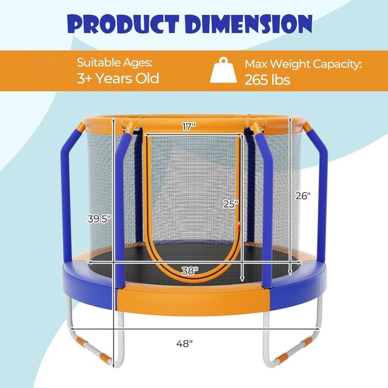 ·Easy to Set Up: A clear installation video has been uploaded on product detail page for your reference. And all you need to put this kids trampoline together is included and no extra needed.