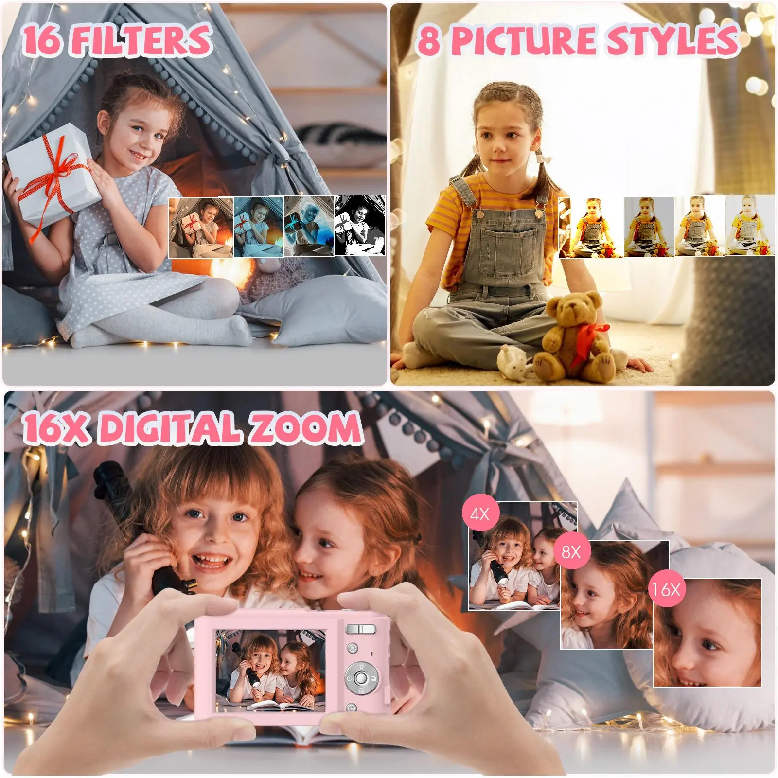 This camera is so beautiful and cute! Love the baby pink color! Will be perfect for my niece. Recommend!