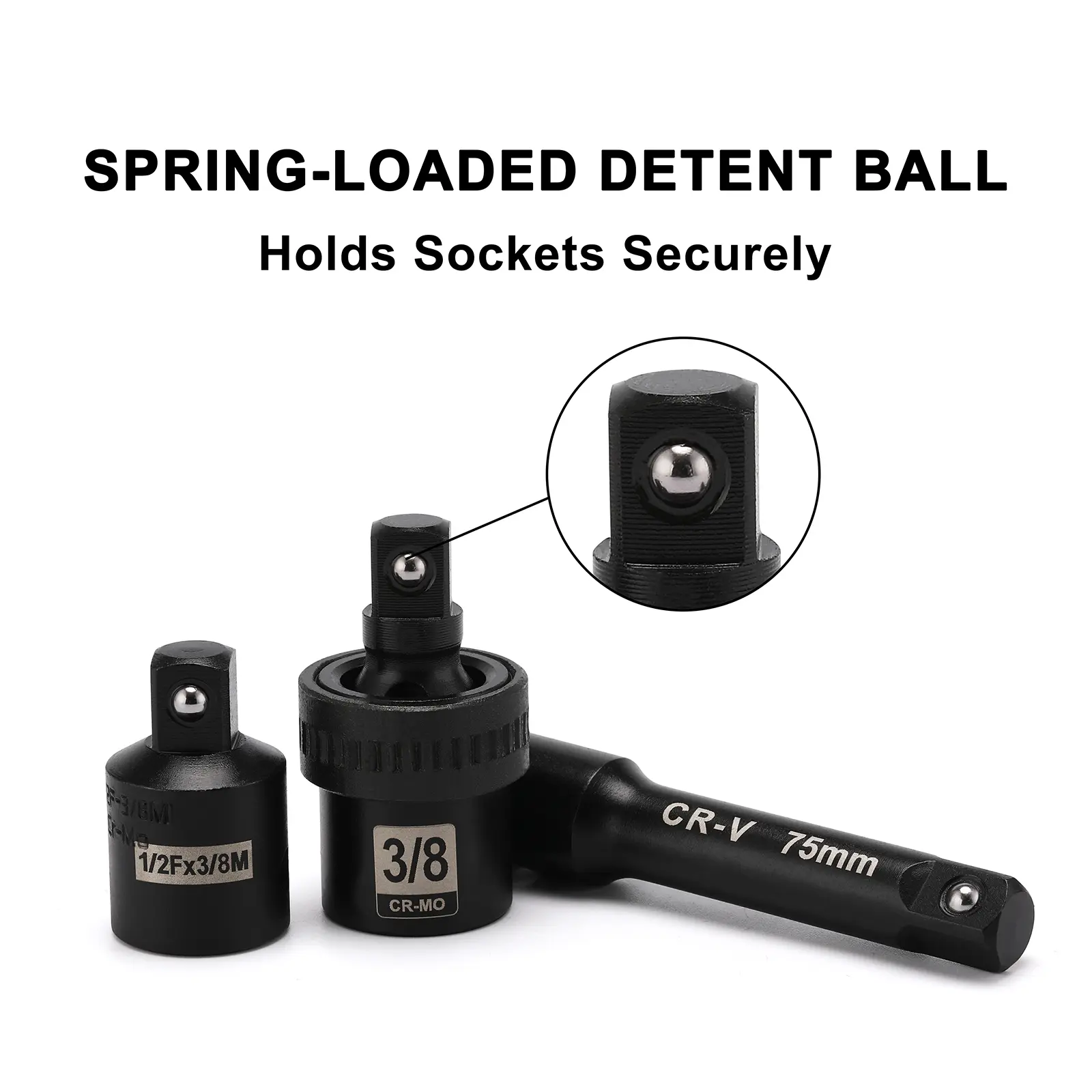 High quality heat treated chrome vanadium steel with corrosion-resistant black phosphate finish.Detent ball can hold sockets securely.