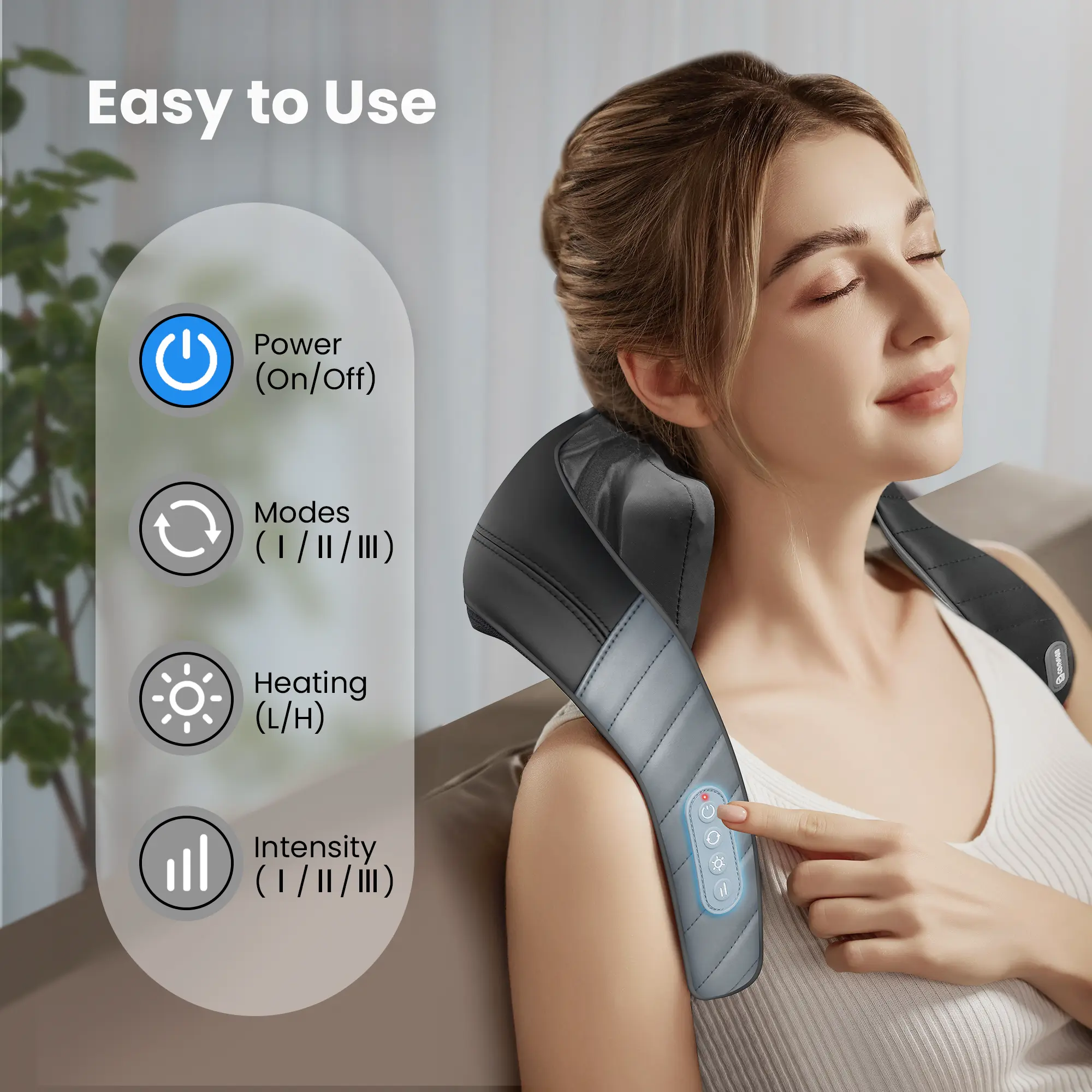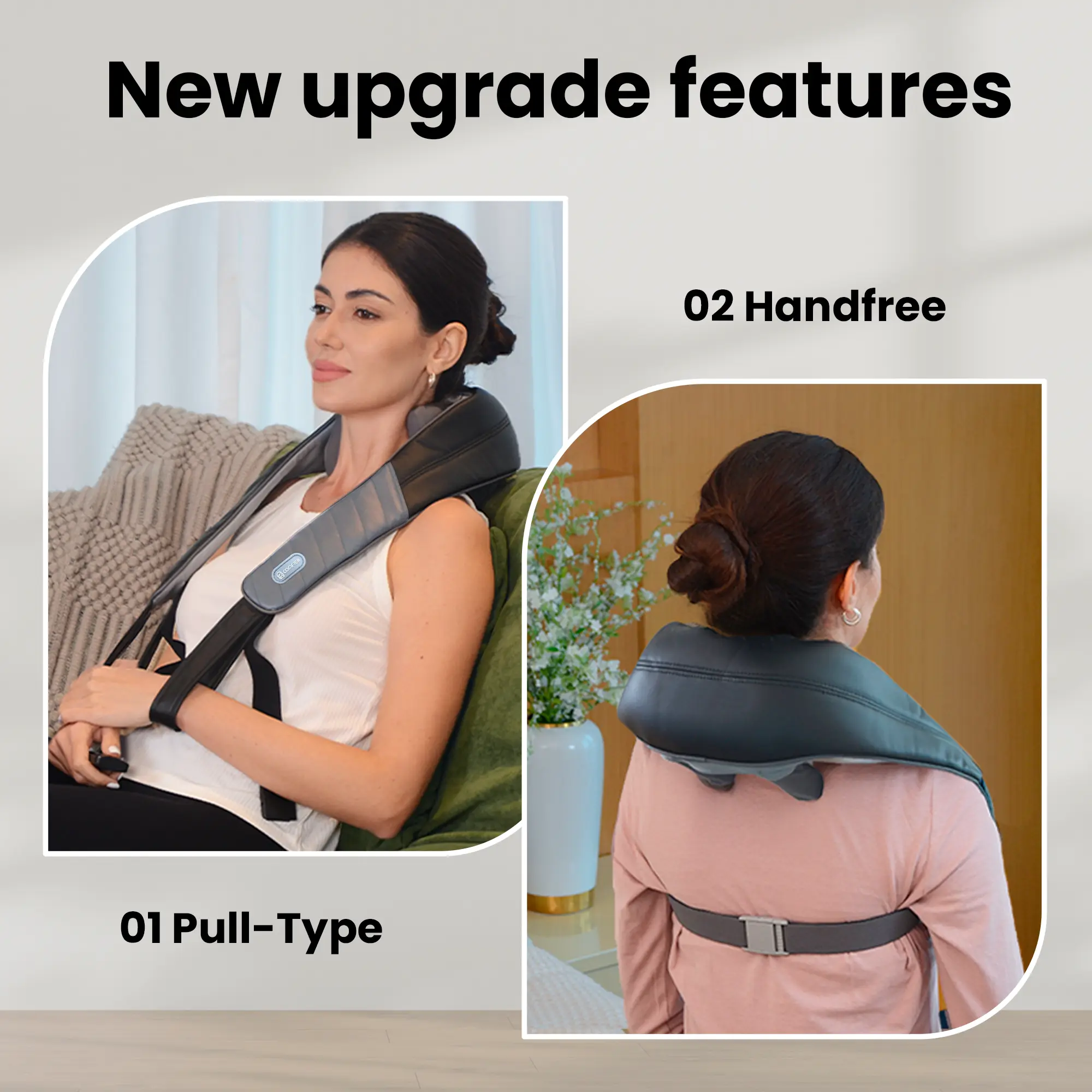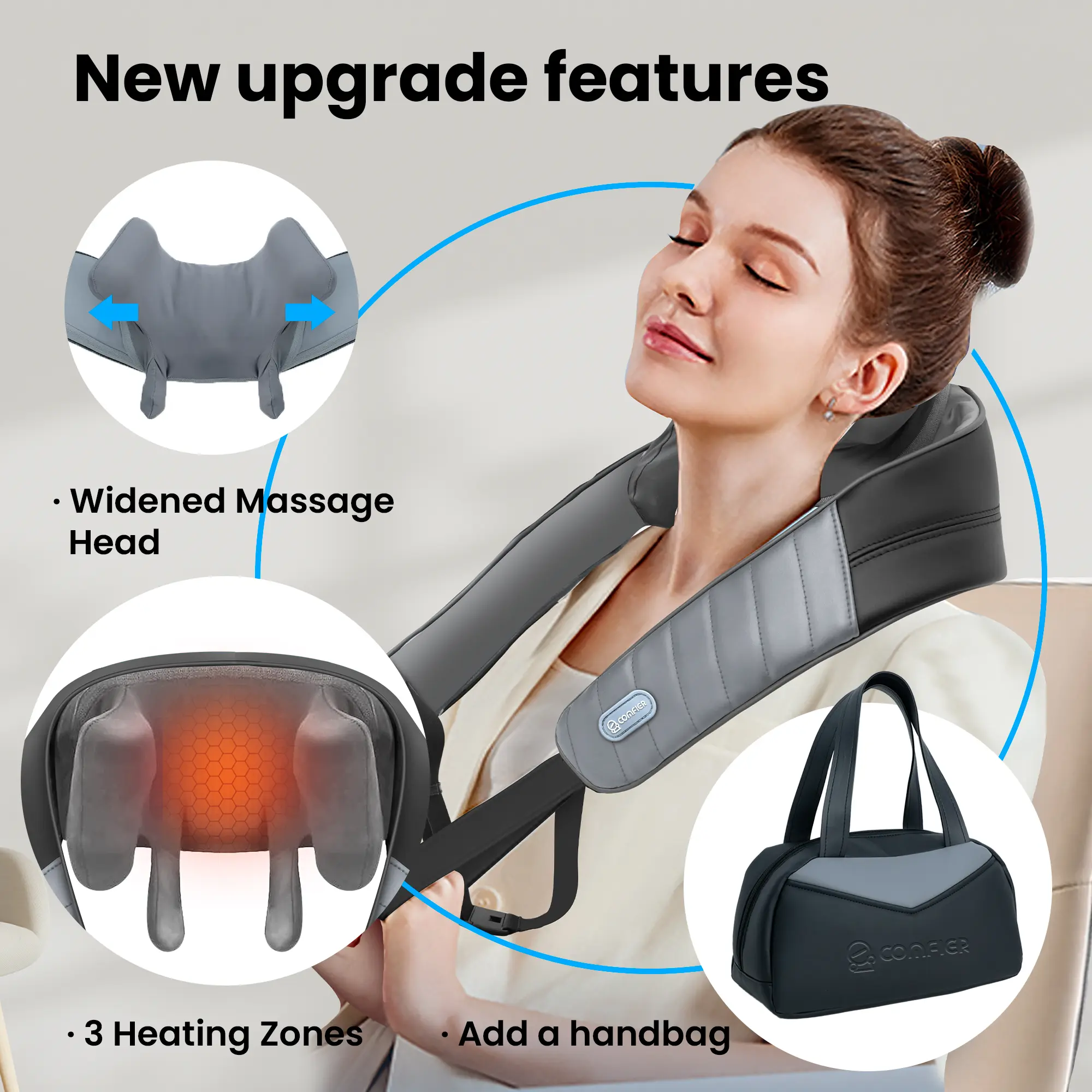 ·Triple Heat Zones: We have upgraded the massage heads with an added heating function, delivering a deeper relaxation experience. The massage heads are equipped with three adjustable heat zones (110℉-130℉), covering a larger area to relieve muscle tension effectively.Whether you’re targeting your neck, shoulders, or upper back, the heat therapy enhances the effectiveness of the massage, offering you a more comfortable and professional wellness experience.