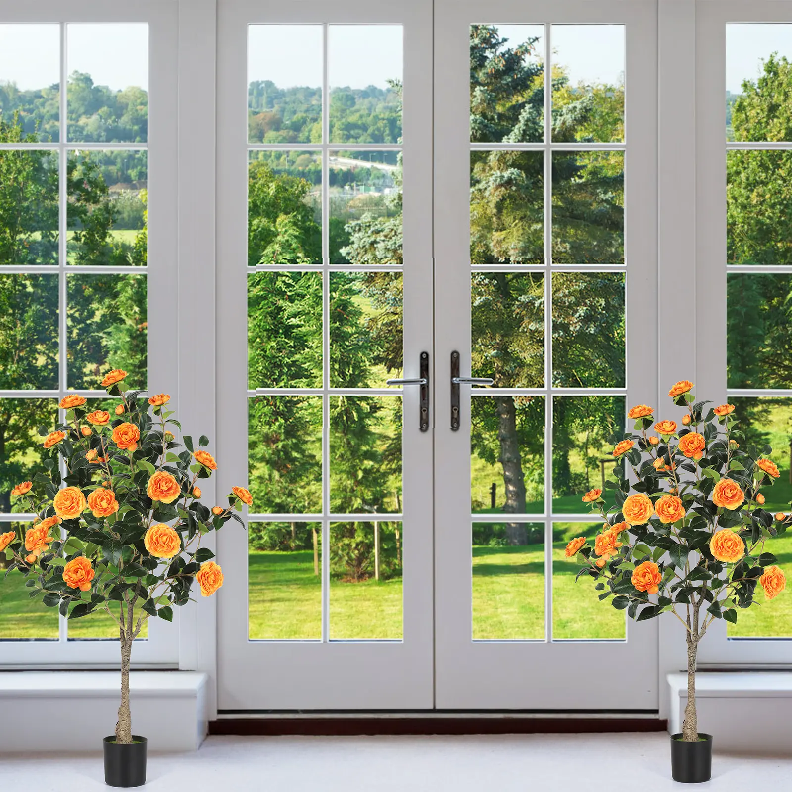 🌿 Elegant 4FT Artificial Camellia Tree Set of 2