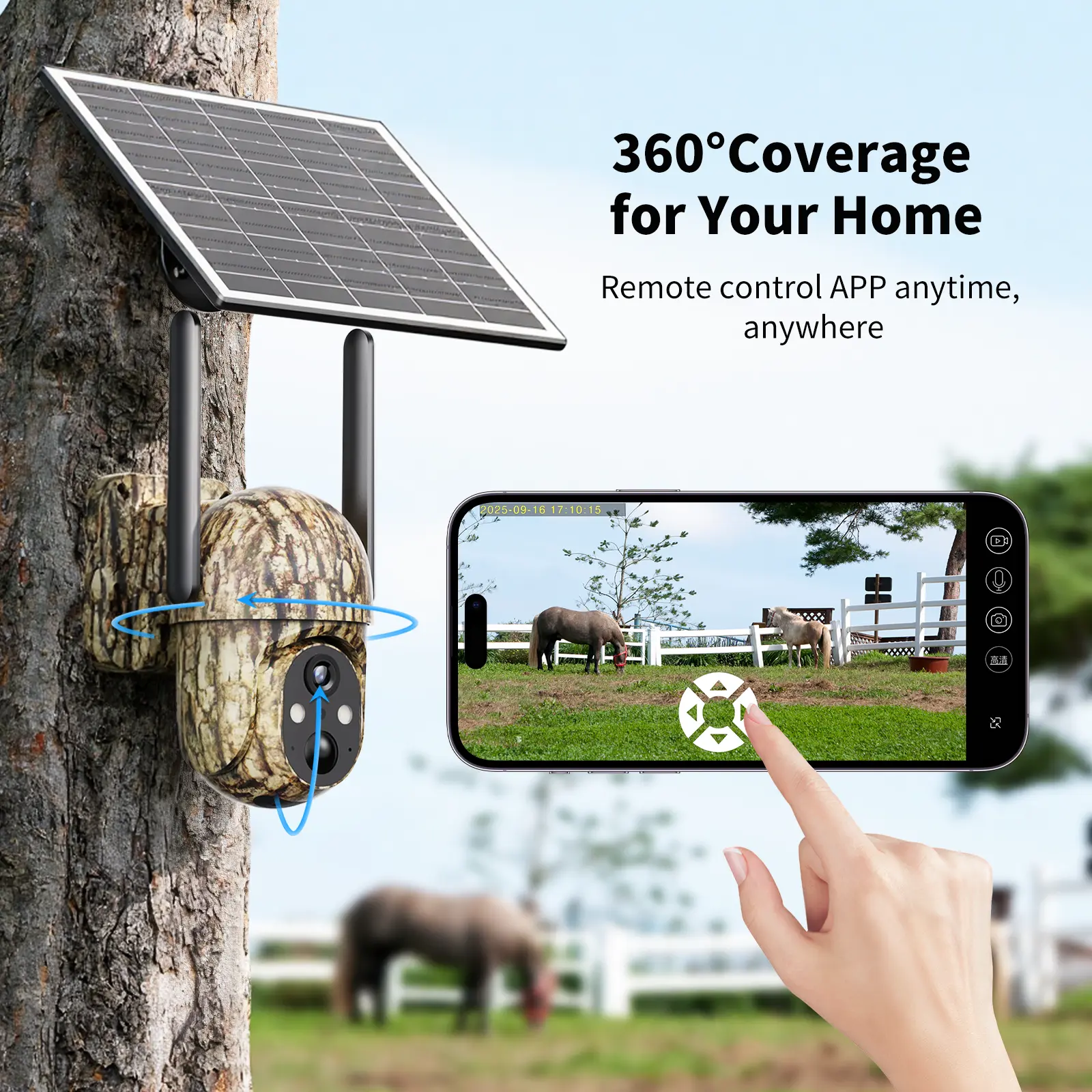 ·Wall Mounting: Mount the camera and solar panel on a wall or tree. 🏠