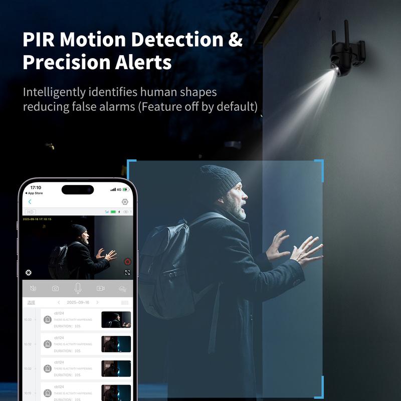 Enjoy clear, high-definition footage with motion detection and night vision. The camera provides continuous surveillance. The remote APP allows you to monitor live from anywhere. Spotlights can be turned on via the APP for full-color night vision, ensuring clear images in dark environments.