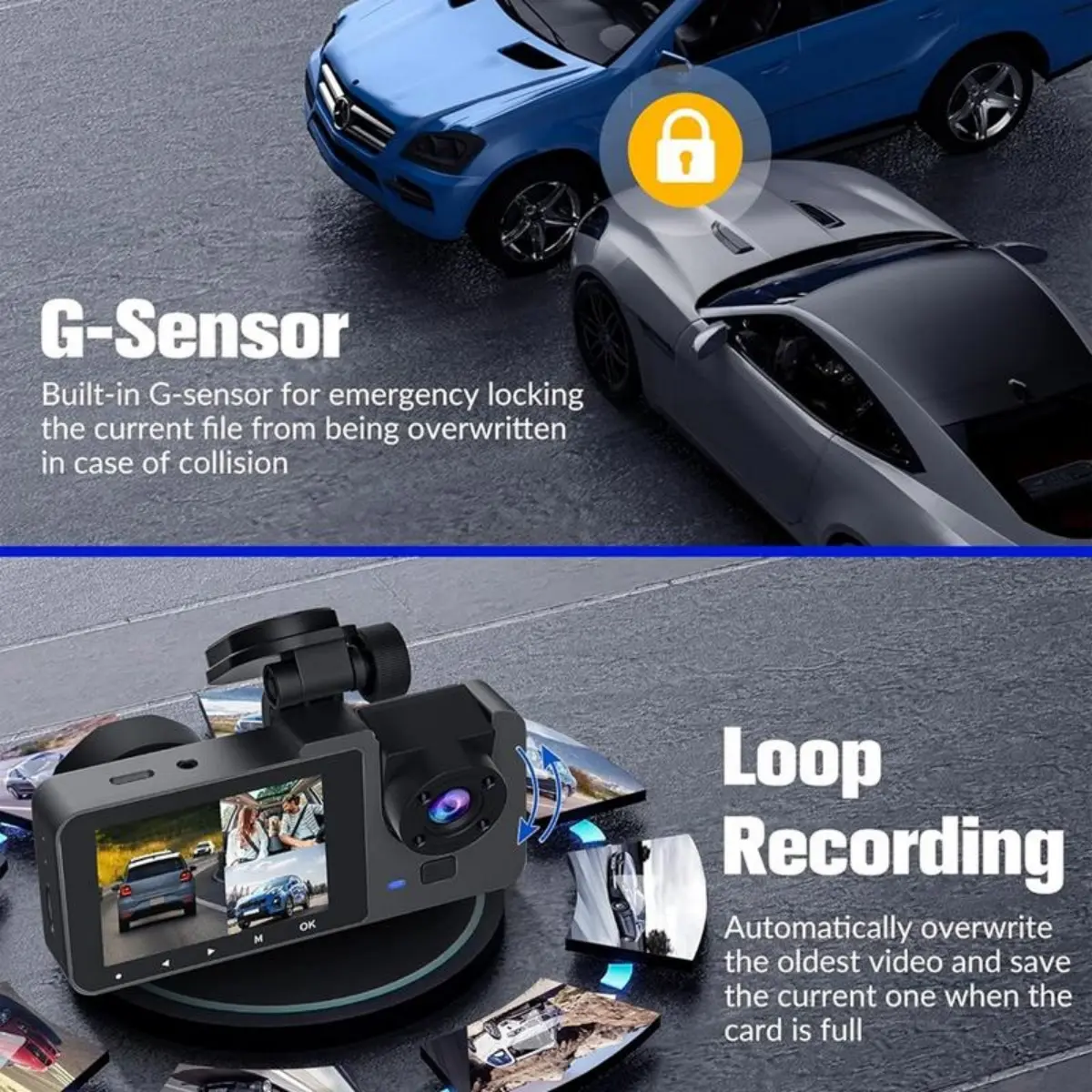 ·【Car Camera - Dash Cam Front and Rear】When the storage limit on the 32GB card is reached, the latest record will automatically overwrite the old record. Automatically detects sudden shocks/collisions and locks emergency footage to prevent video from being overwritten during loop recording. Thanks to the heat-resistant chipset and adhesive pad, the car dashcam can be well attached to the windshield at extreme hot or cold operating temperatures from -40 ° F to 185 ° F