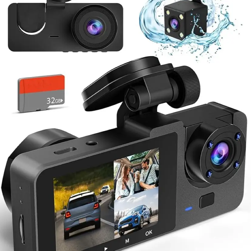 ·【4K Full UHD 3 Channel Dash Cam】3 channel camera can record video up to Full UHD 4K( 3840*2160P) on the front and 1080P on the rear, Offering a 170° front camera, a 120° built-in camera and a 150° rear camera, it can simultaneously monitor the front, rear and interior of the vehicle to maximize road coverage, greatly enhance night vision and provide clear and crisp images and videos. The dashcam is a combination of front, rear and interior cameras.