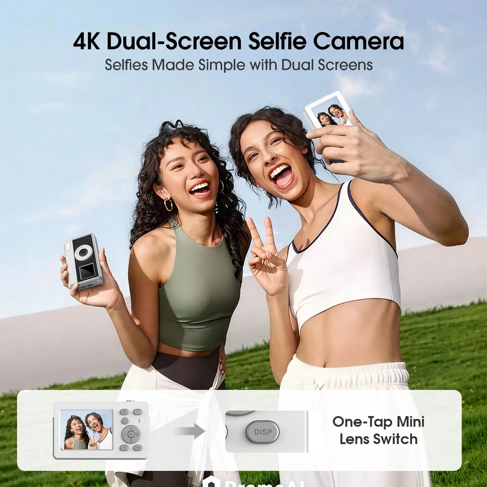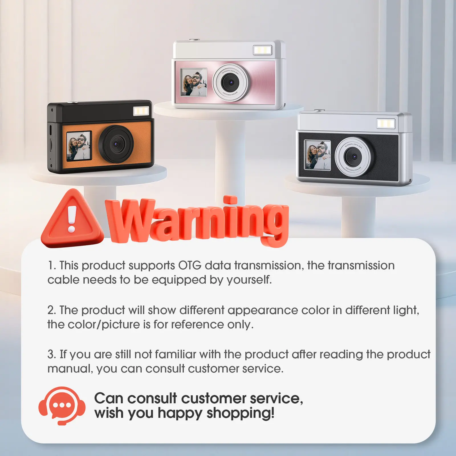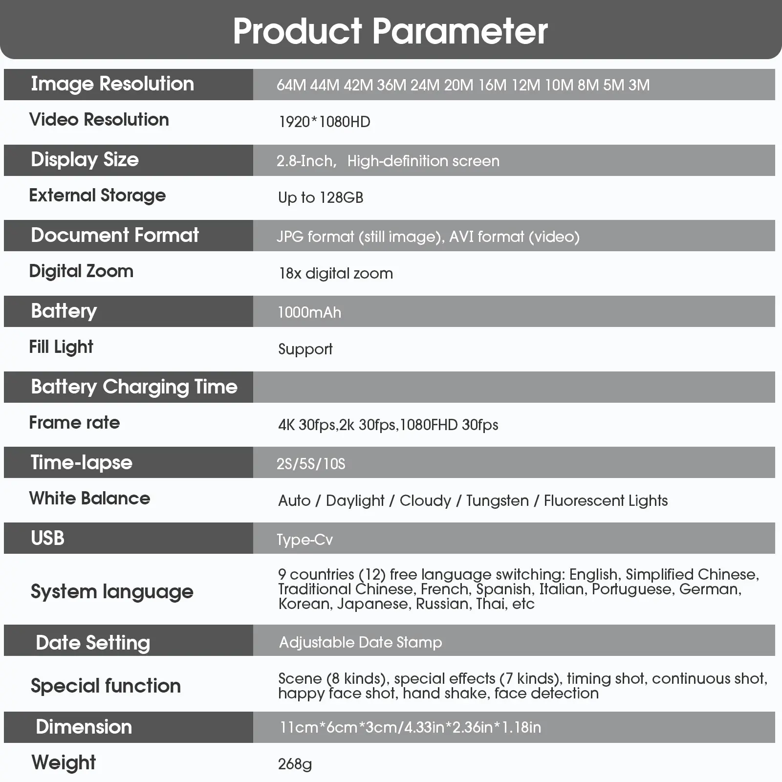 For the $ this is a decent camera. It has the front-facing display, great for taking selfies! It's lightweight and I love the retro look of it. It takes good pictures, default is 12MP which seemed better than the 64MP!