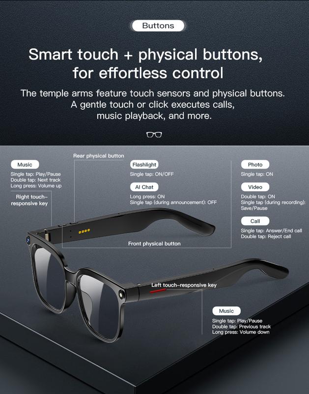 4K Smart Camera Glasses with 8MP Camera, 1080P HD Video Recording, Bluetooth Audio Sunglasses, Real-Time AI Translation, Voice Assistant, Touch Control, Wearable Camera Glasses for Travel & Daily Use